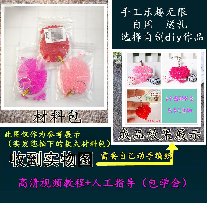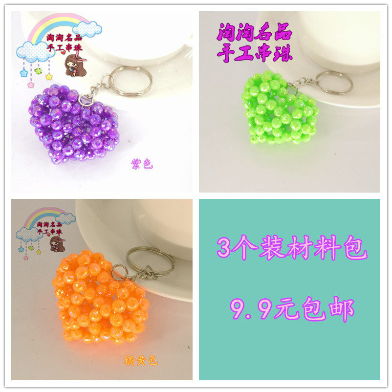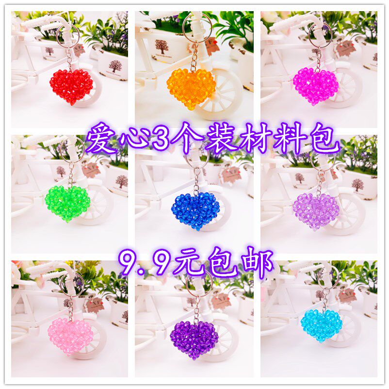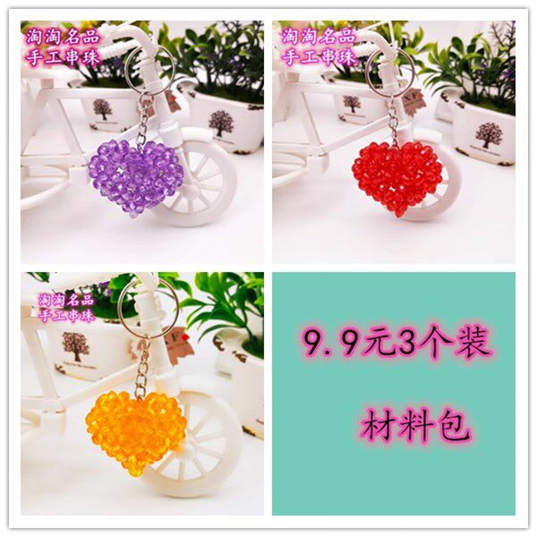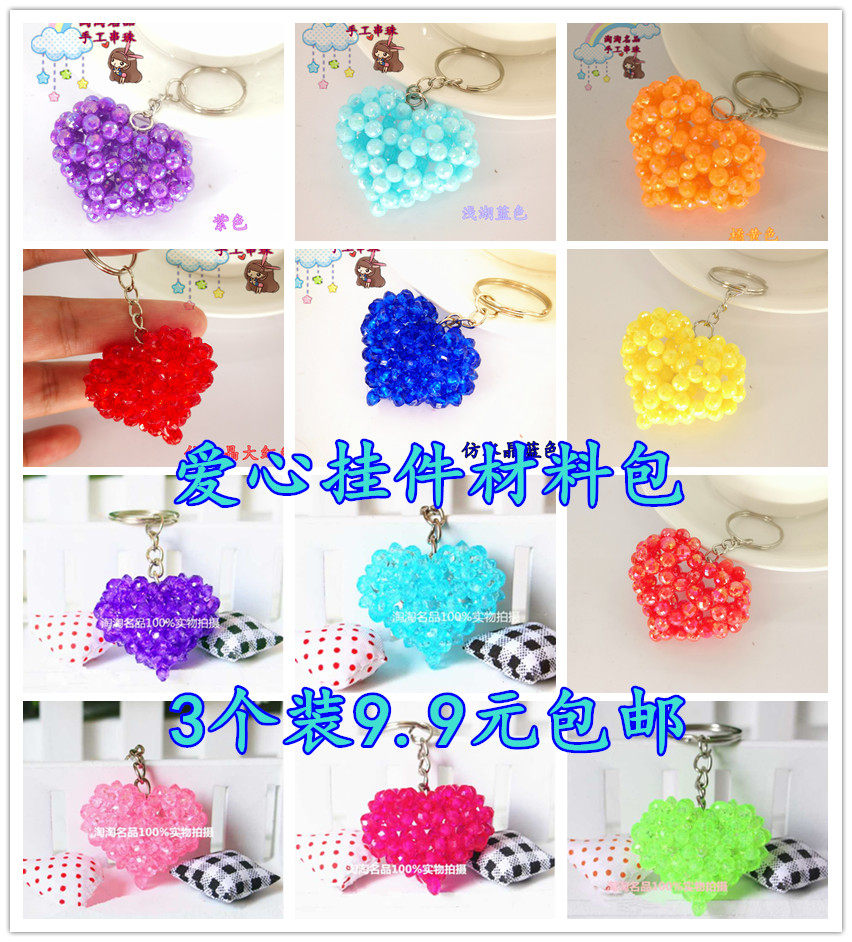 淘宝手工DIY串珠爱心桃心鼓心小挂件材料包 亚克力散珠包包钥匙扣挂件