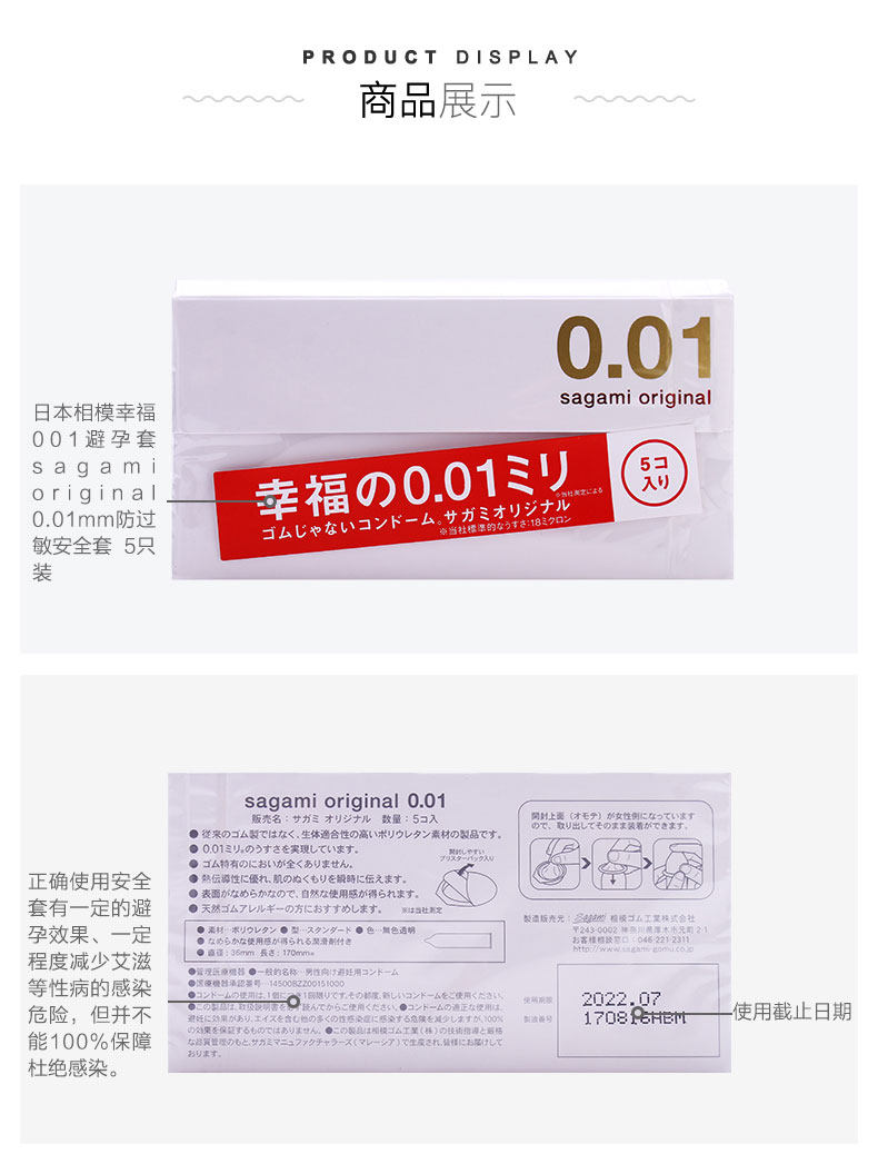 淘宝【自营】日本sagami相模001避孕套超薄安全套5只装零感润滑乳胶调