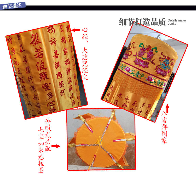 淘宝佛教道教绣品佛堂装饰用品 1234米心经大悲咒织锦布经幢幡 佛幡筒