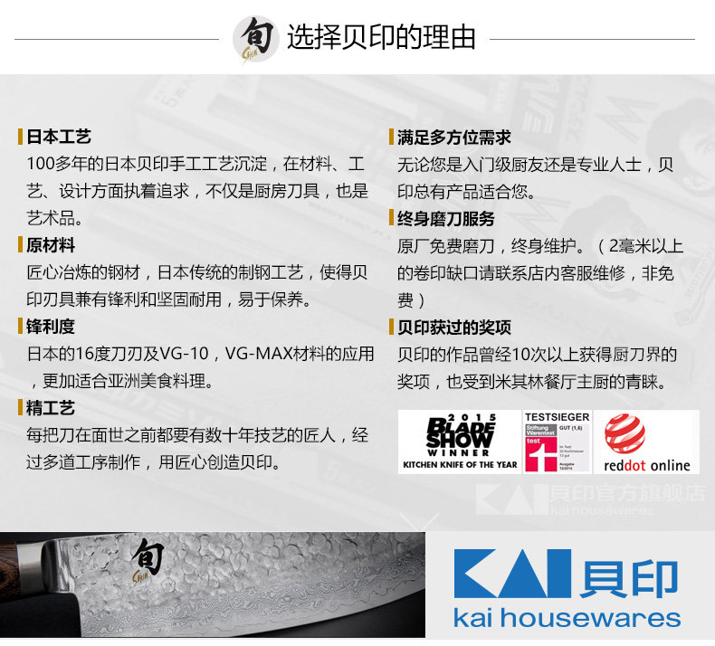 淘宝KAI贝印关孙六中华菜刀套装不锈钢厨刀厨师家用三德刀
