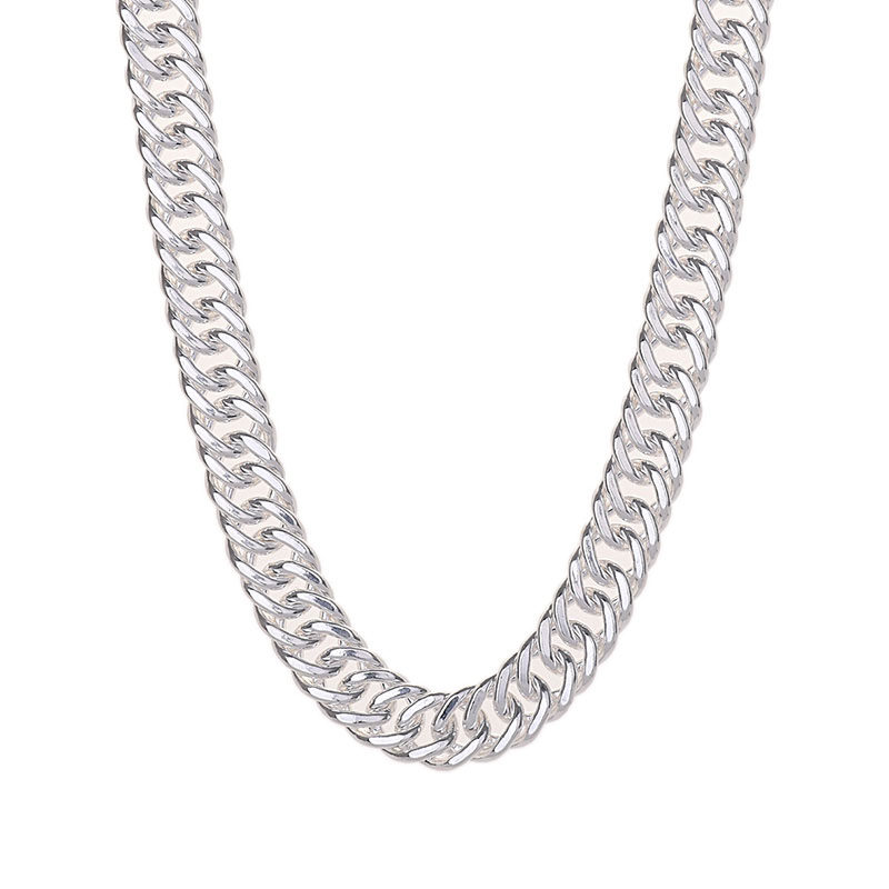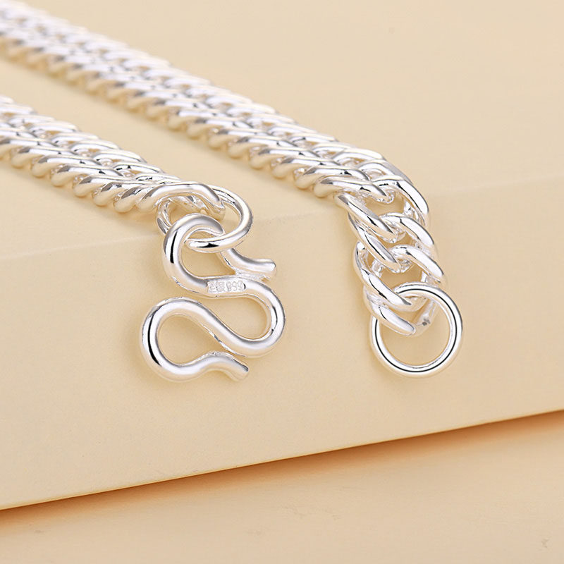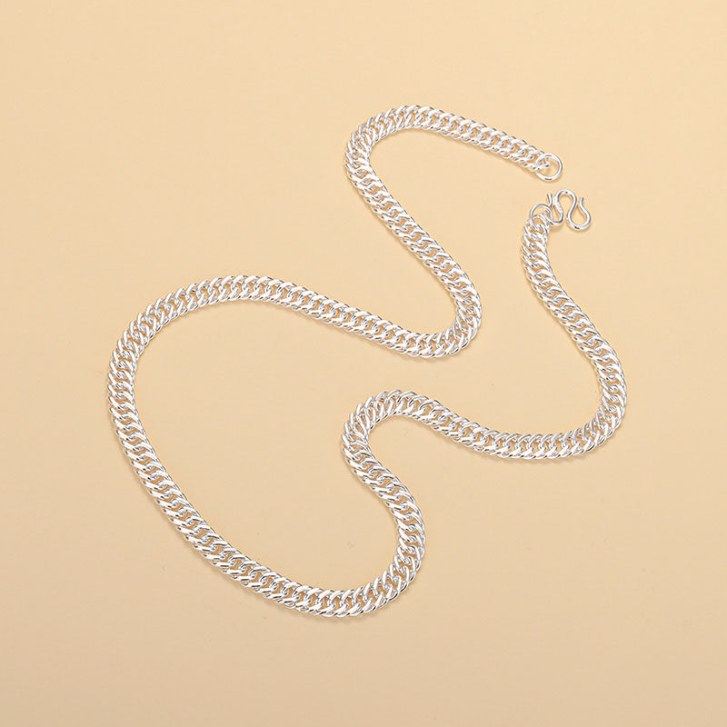 淘宝男士项链999纯银马鞭链纯手工银链儿童扁链平链粗款霸气侧身项链