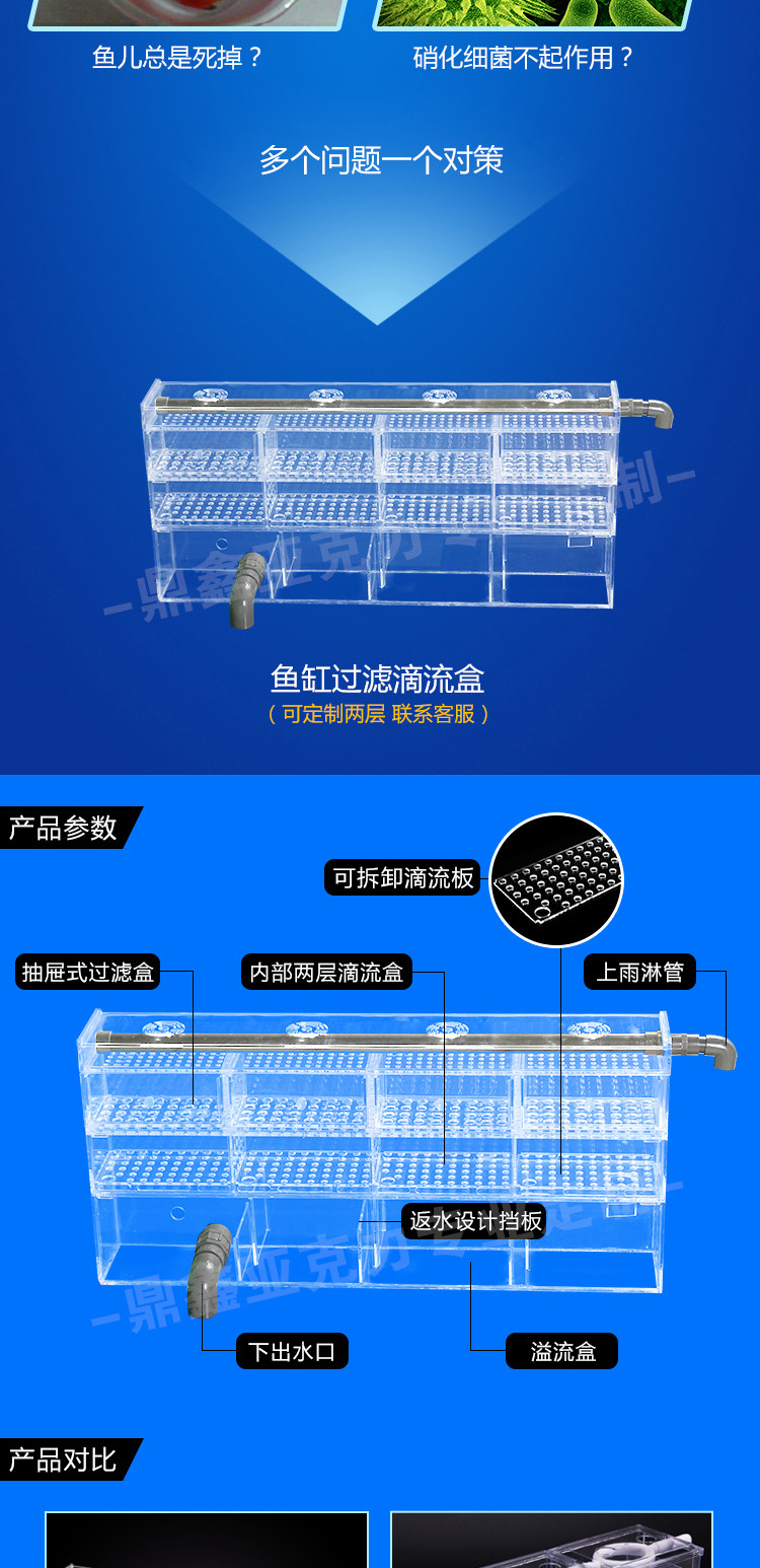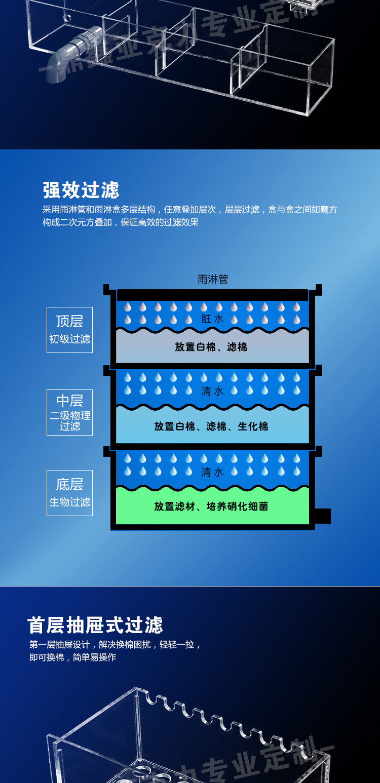 淘宝鱼缸过滤上过滤盒鱼缸上置过滤槽雨淋式滴流盒过滤槽亚克力过滤槽