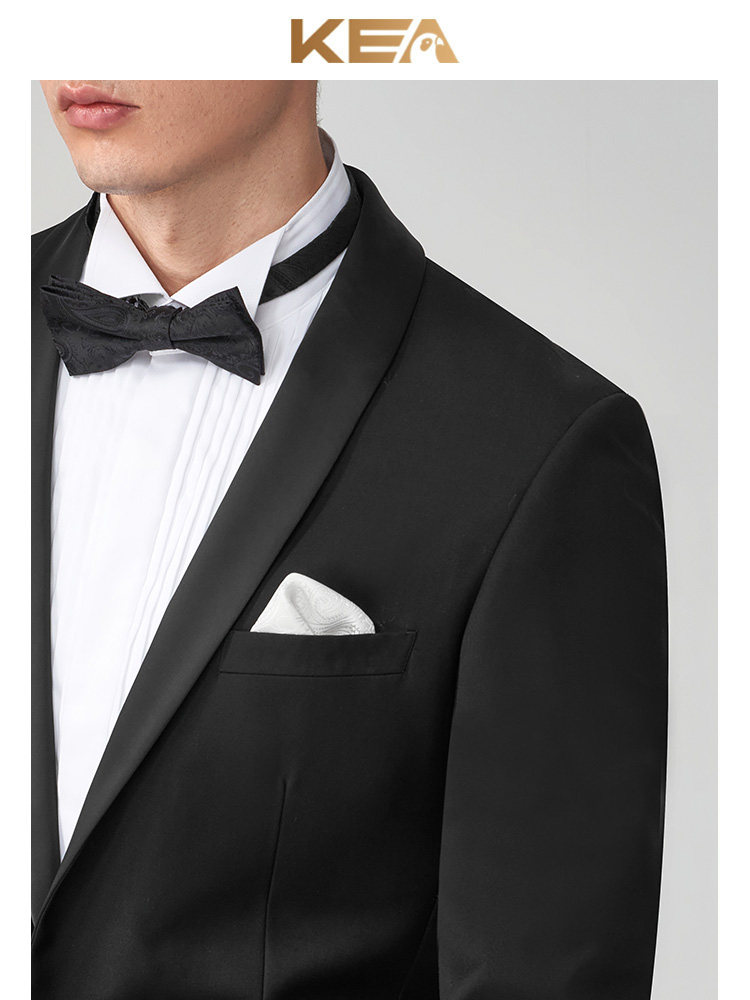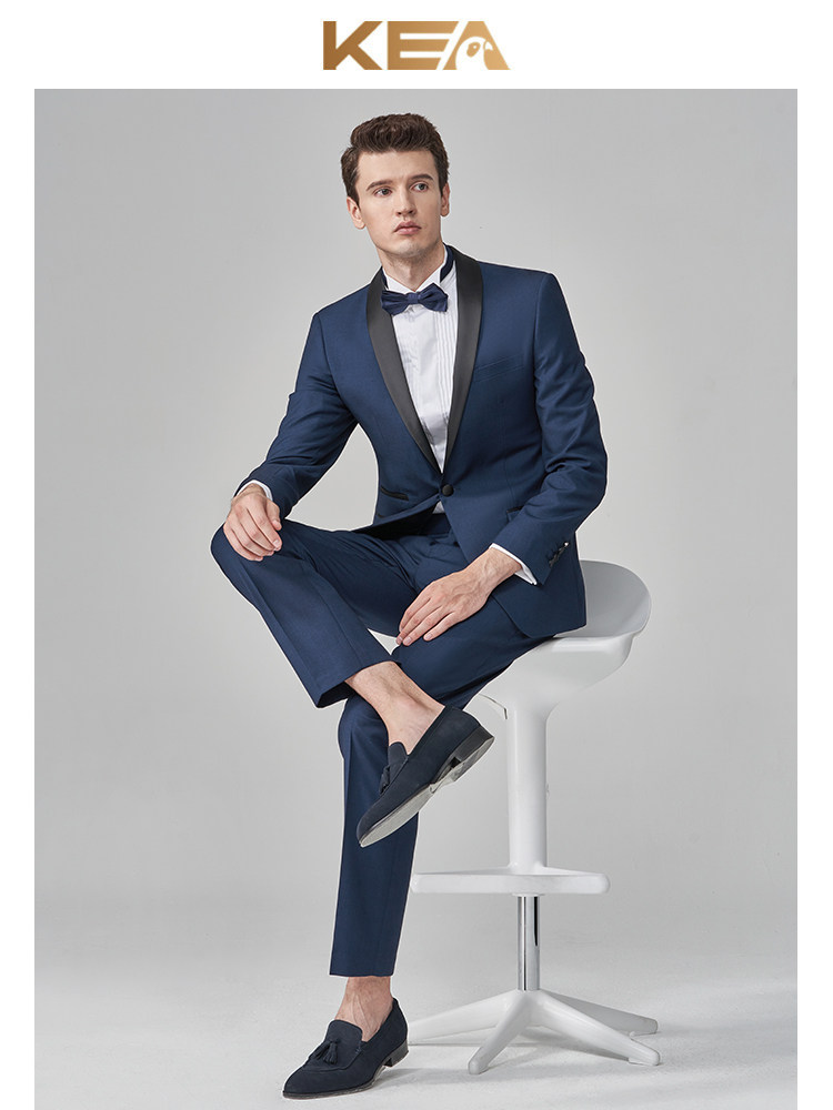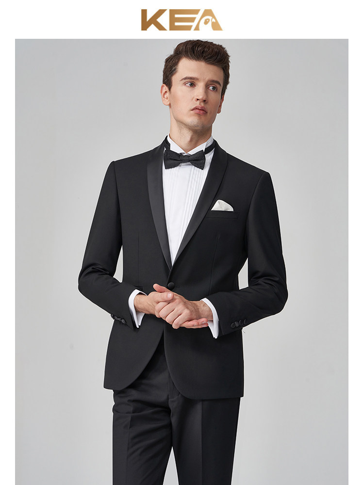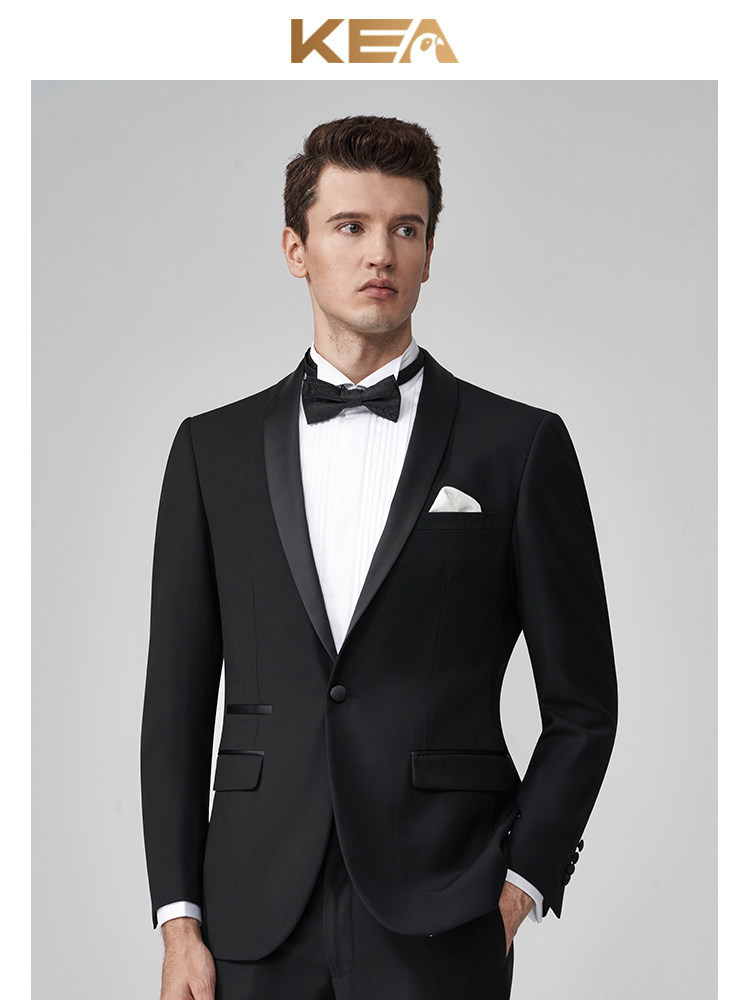 淘宝KEA新郎西服套装修身结婚西装男婚礼宴会主持人青果领塔士多礼服