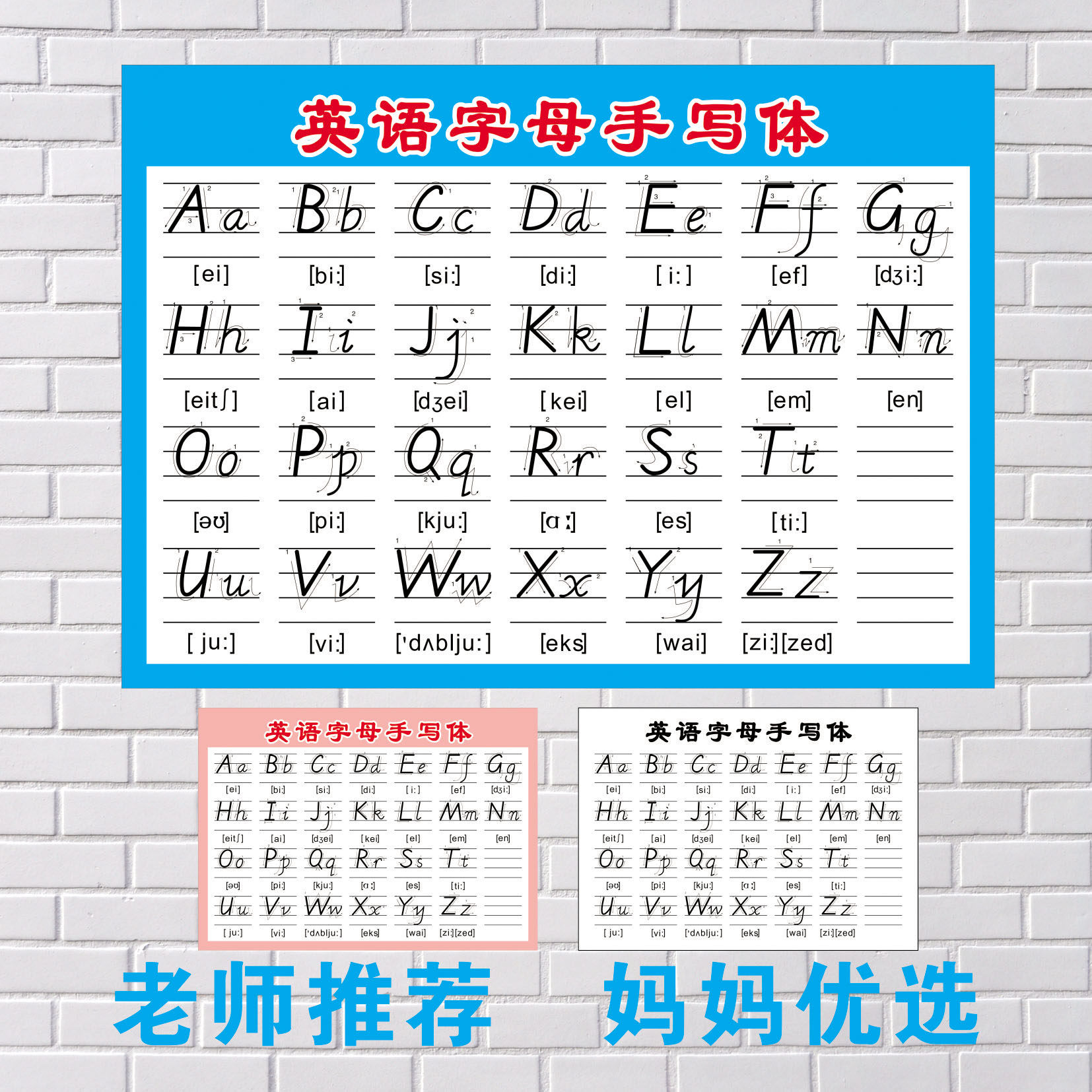 淘宝26个英文字母标准英语书教学英语字母表印刷体手写体挂图墙贴纸画