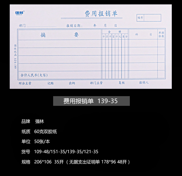 淘宝强林报销单记账凭证差旅报销单据费用报销费单本通用出差报销单原始凭证报销凭单差旅费报账单无据支出证明单