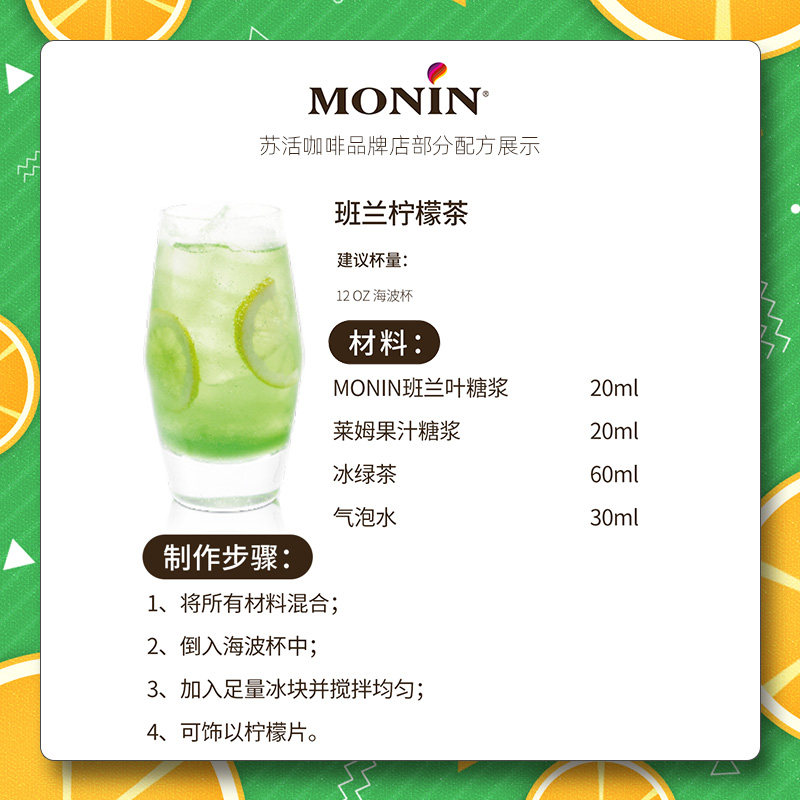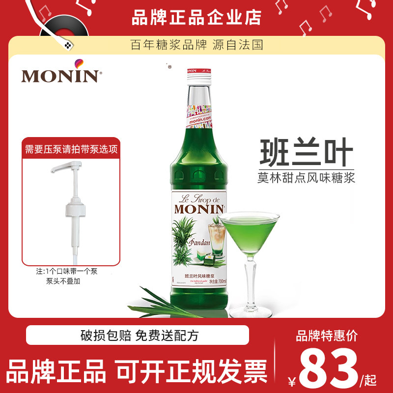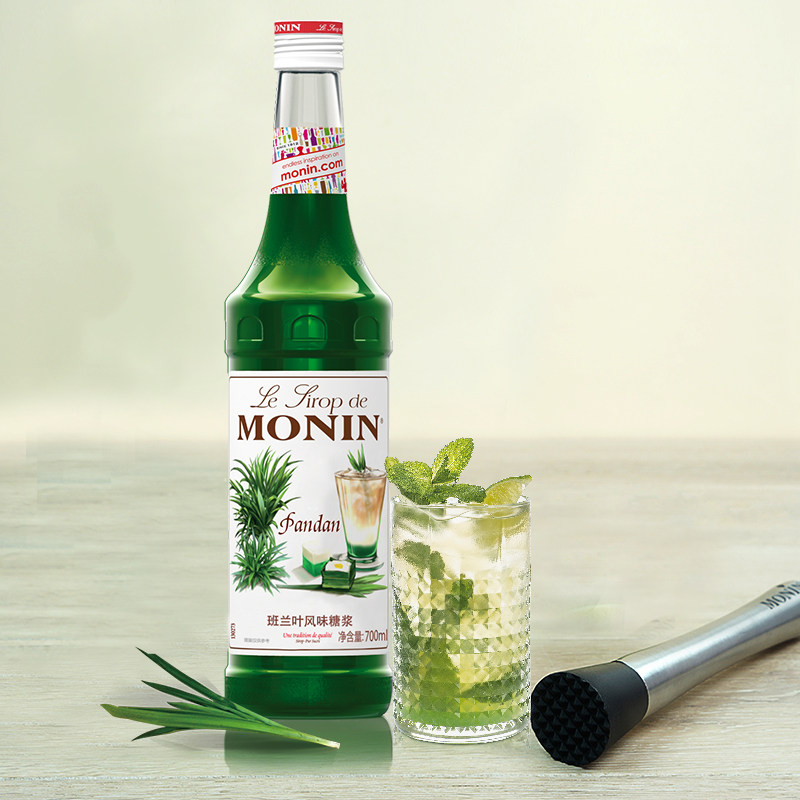 淘宝送配方MONIN莫林斑兰叶糖浆浓缩果露700ml调咖啡鸡尾酒奶茶班兰草