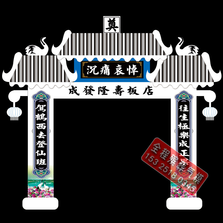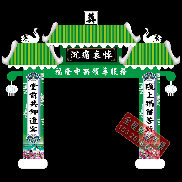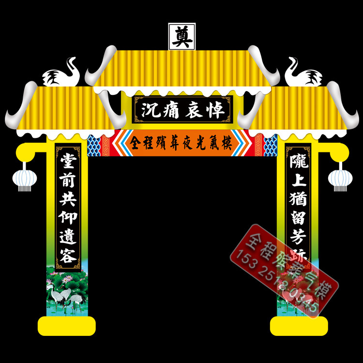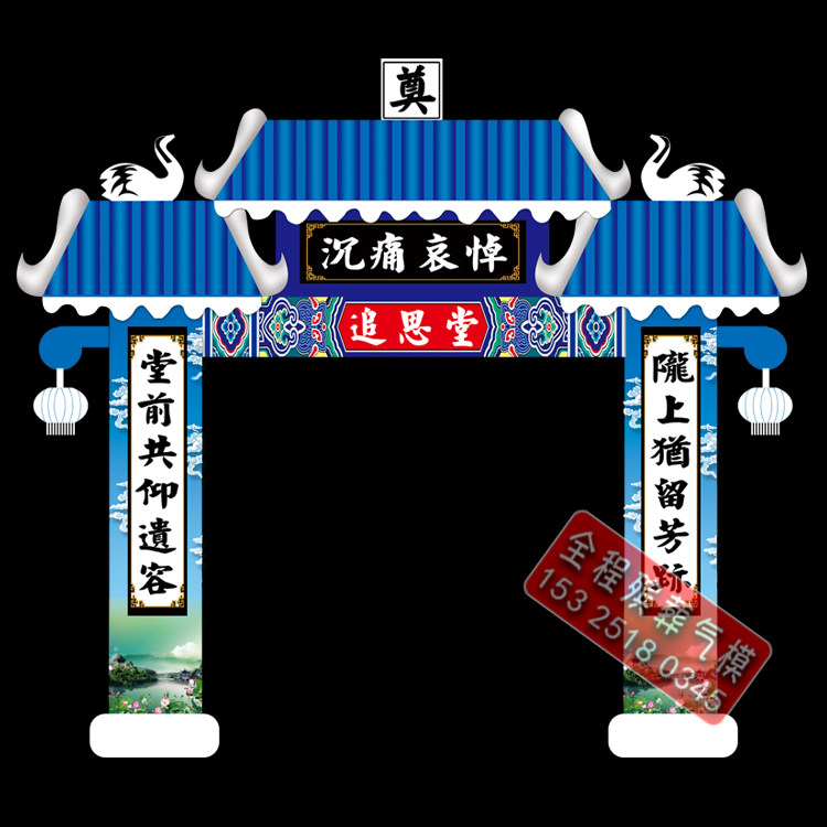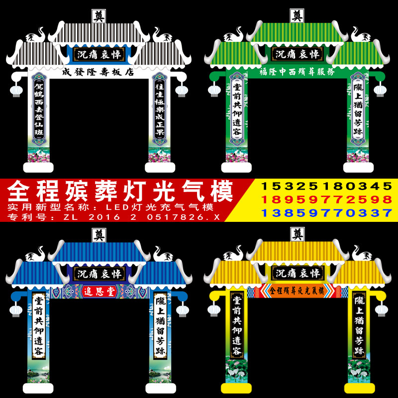 淘宝新款夜光白事丧事拱门气模殡葬灵堂布置LED灯光灵棚充气气模发光