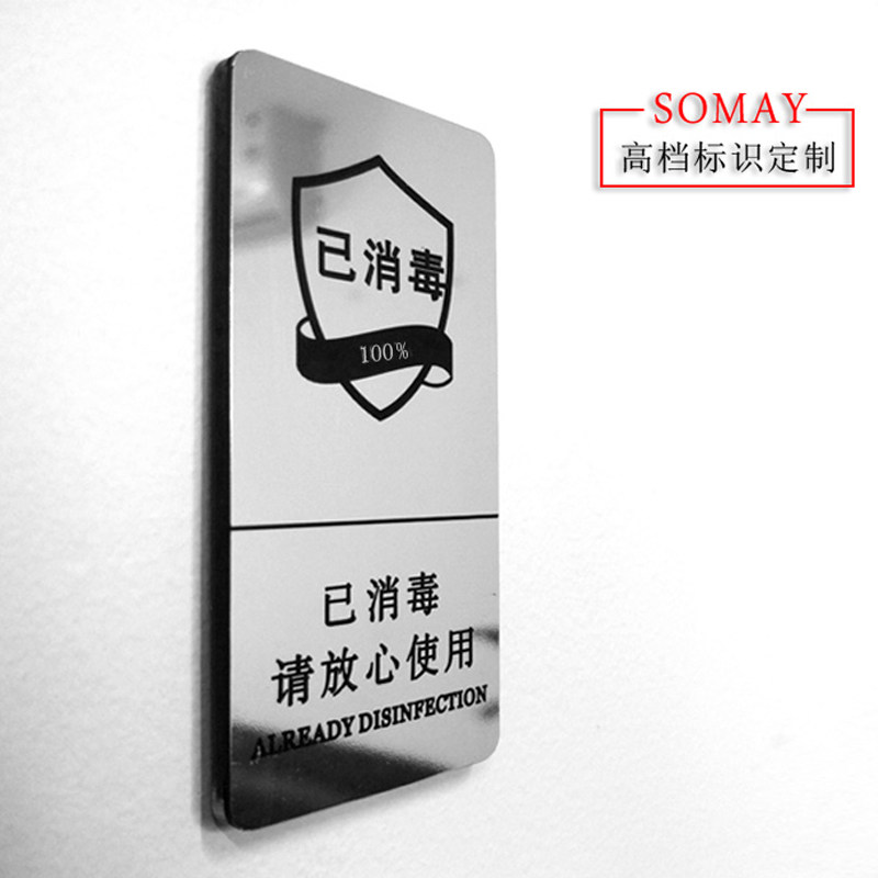 淘宝已消毒请放心使用提示牌勤洗手标语贴定制餐厅餐具指示牌银色标牌