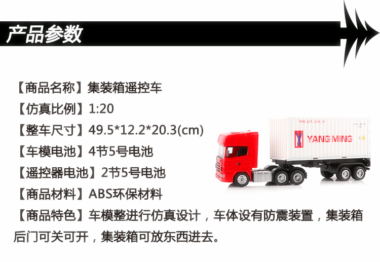 淘宝20尺阳明YANG MING厢式货车集装箱 汽车模型 手柄遥控 货柜车模