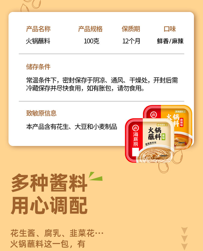 淘宝海底捞火锅蘸料100g小包装 5盒包邮 家用芝麻酱烧烤蘸酱四川麻酱