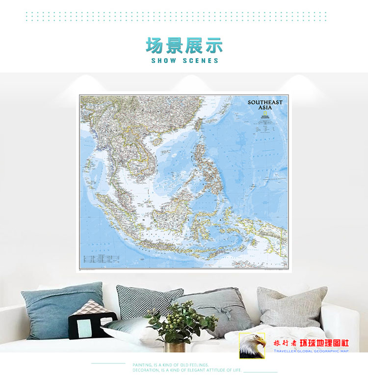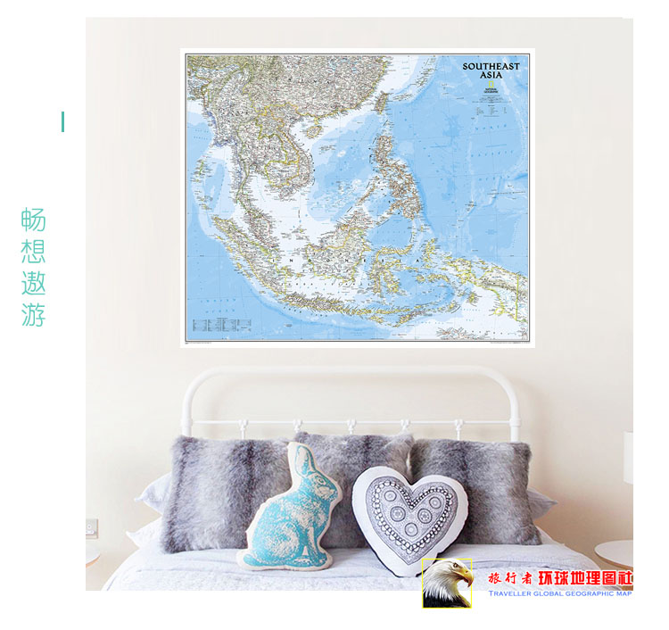 淘宝超大巨幅东南亚地图英文版 印尼马来西亚 菲律宾泰国新加坡装饰画