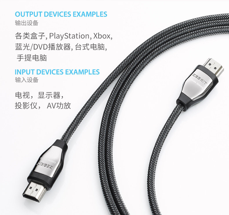淘宝Zeskit高清线HDMI线2.0b版4K HDR PS4pro尼龙网1m2m3m米