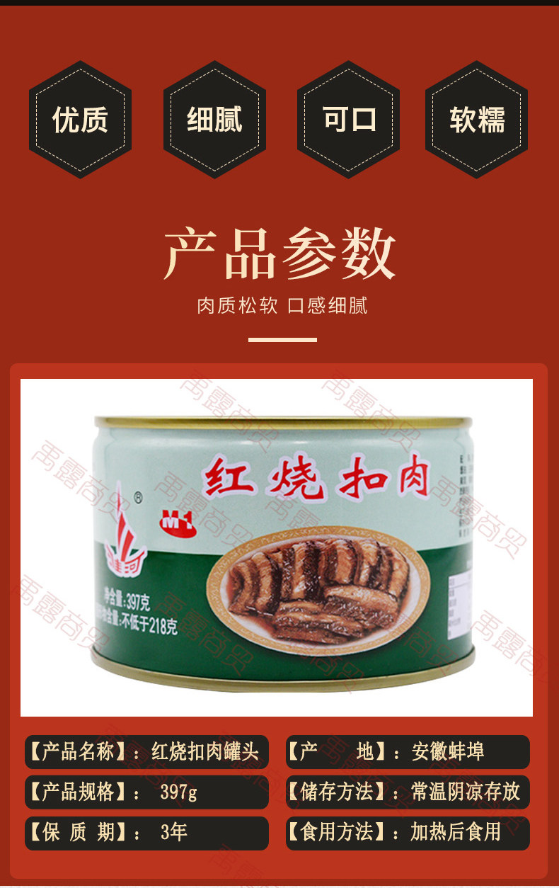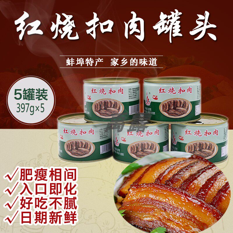 淘宝食品正宗出口淮河红烧扣肉罐头397g5罐户外旅游速食蚌埠特产即食