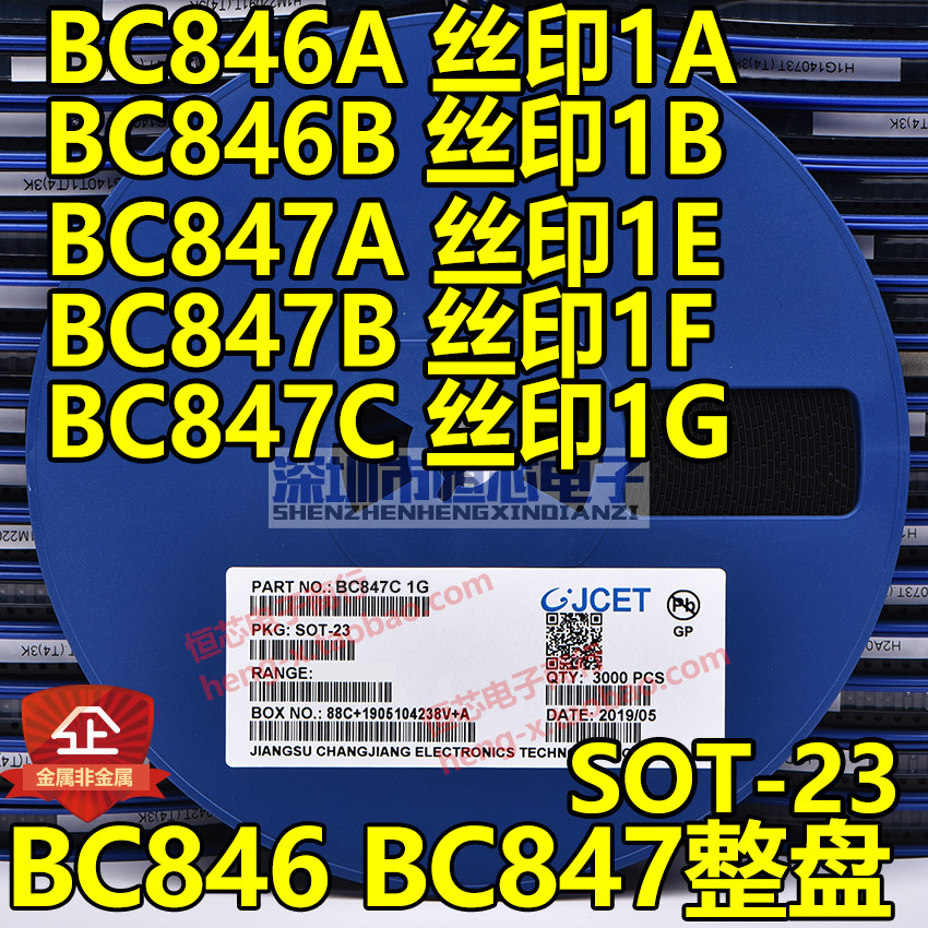 BC846A 丝印1A SOT-23 一盘3K BC846B 丝印1B SOT-23 一盘3K BC847A 丝印1E SOT-23 一盘3K BC847B 丝印1F SOT-23 一盘3K BC847C 丝印1G SOT-23 一盘3K 请选择