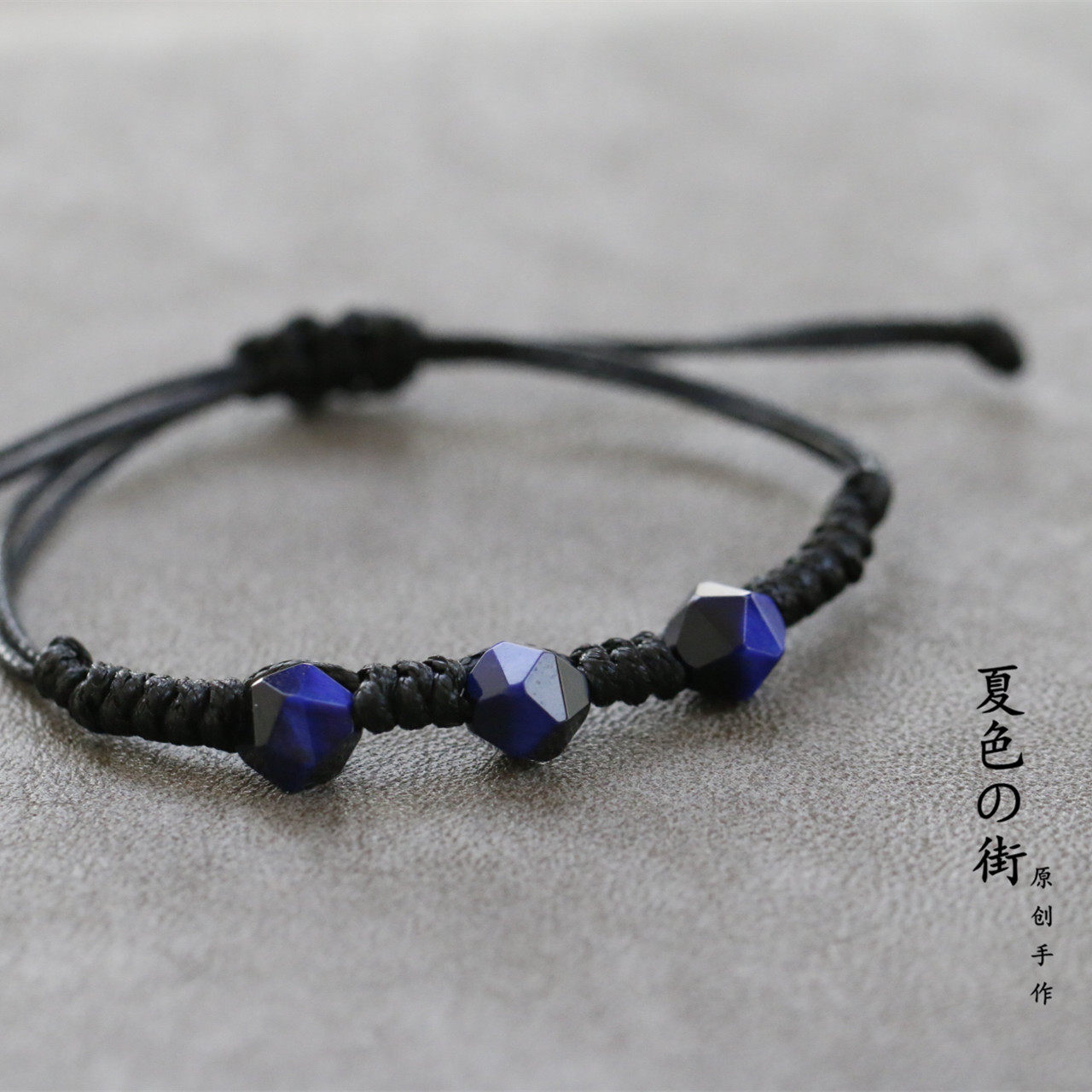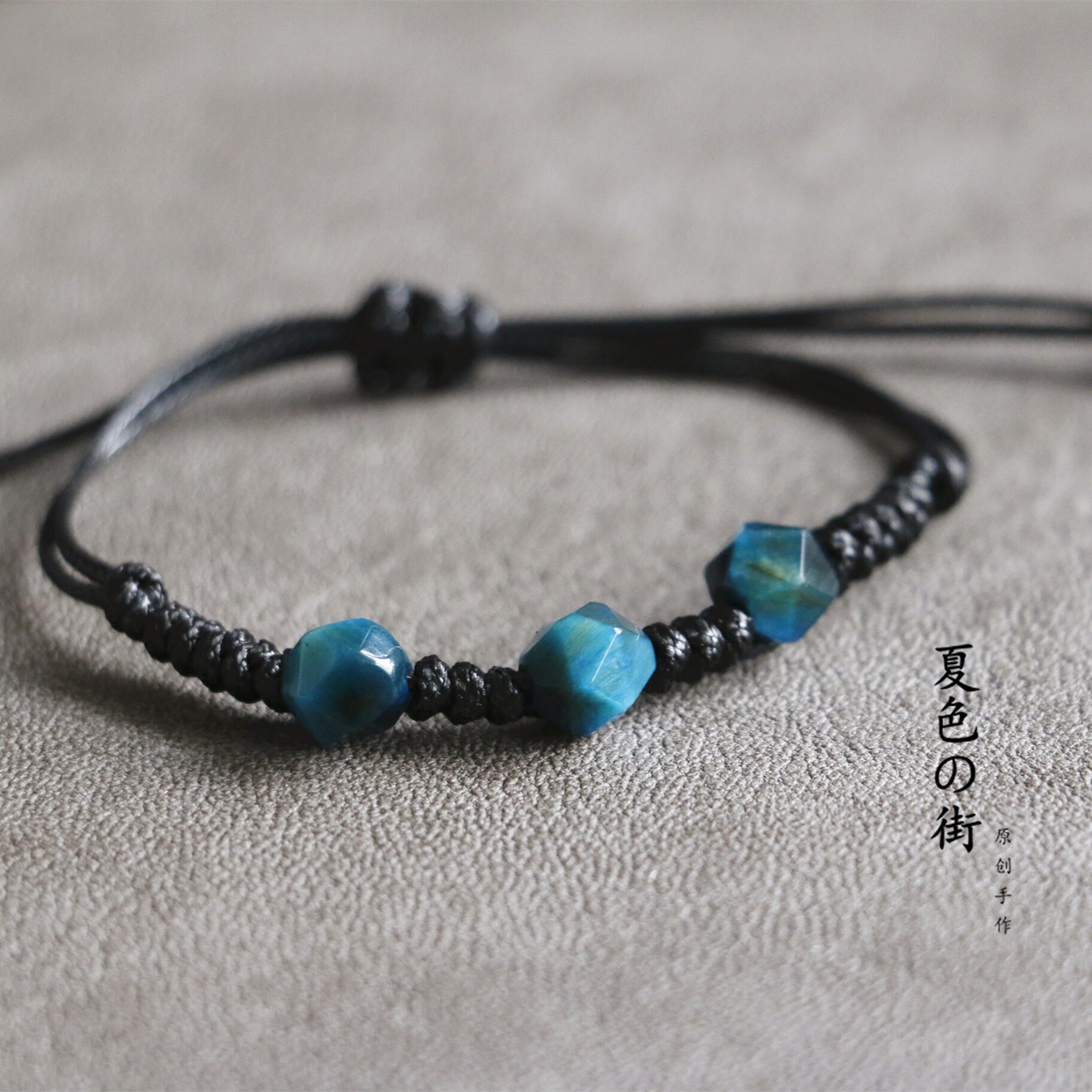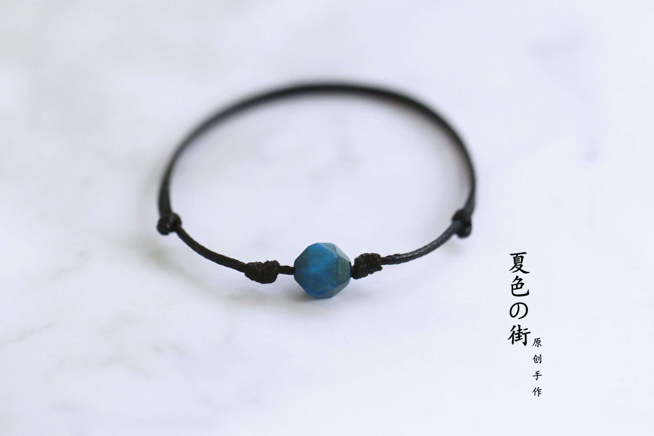 淘宝蓝染 夏色原创手作天然烤色虎眼石手工编绳男女手链中性帅气手绳