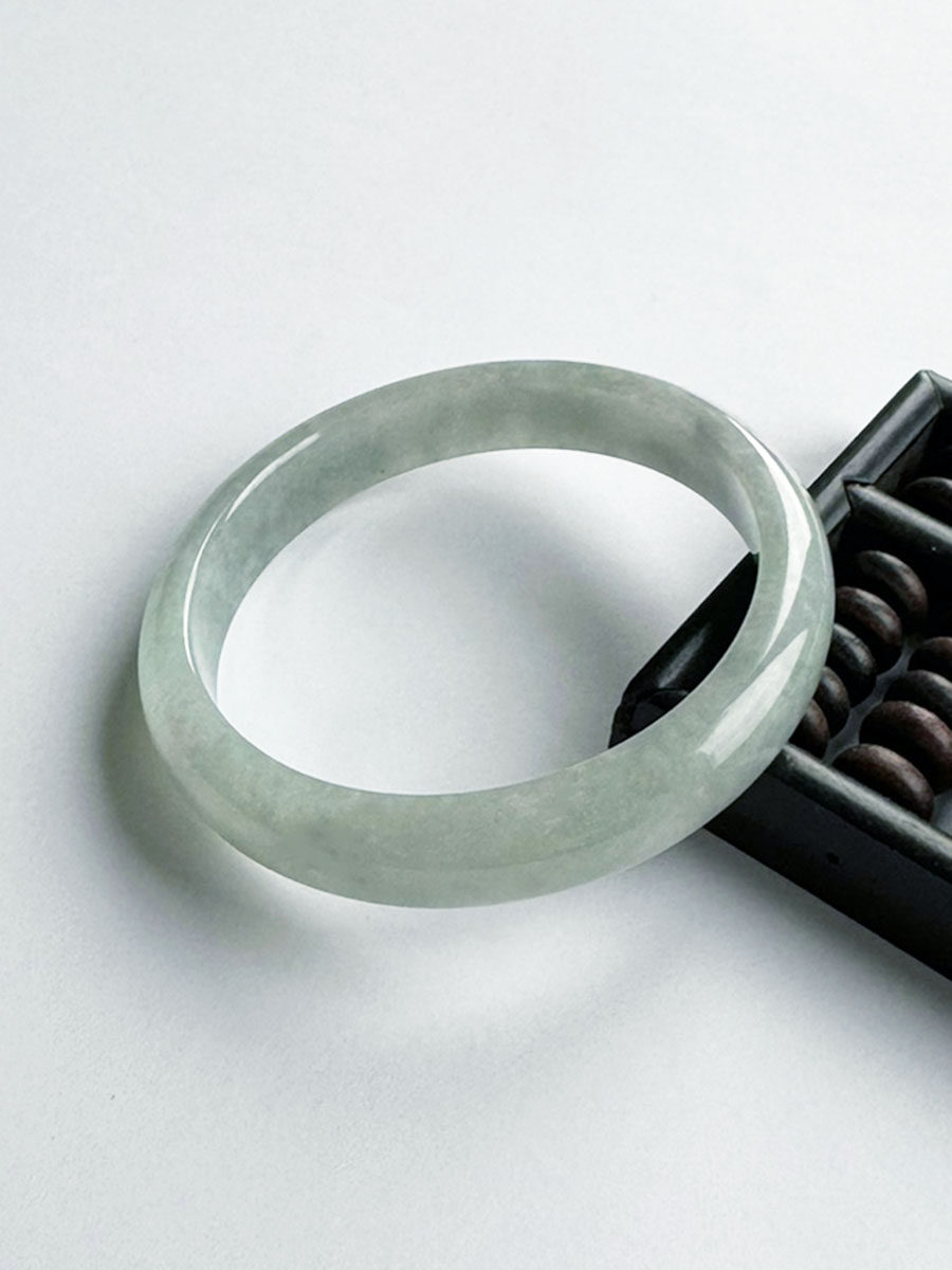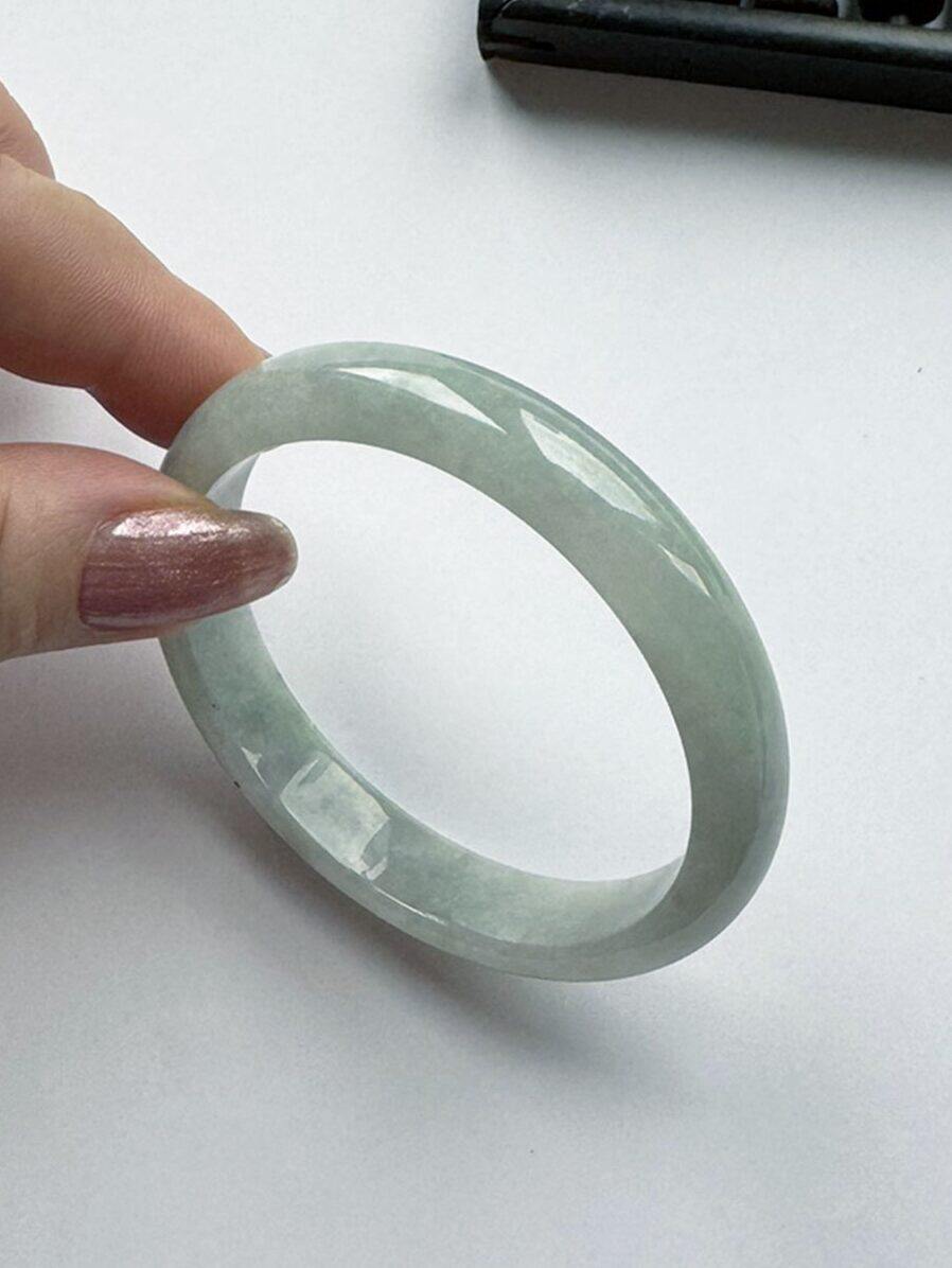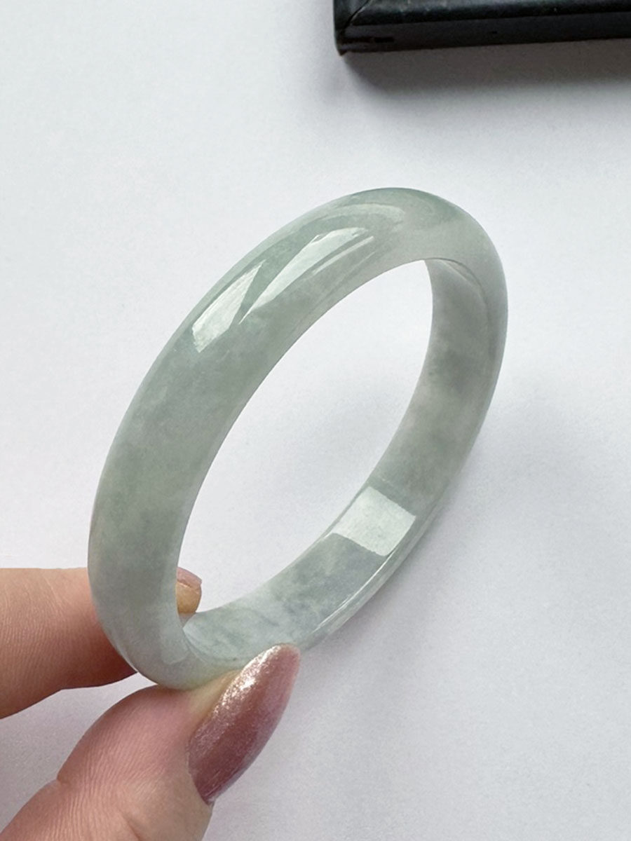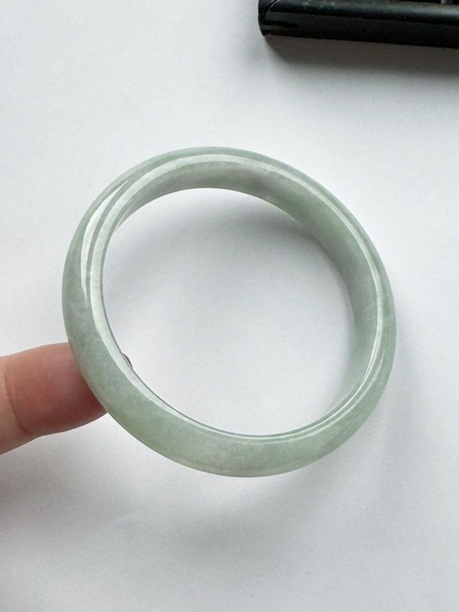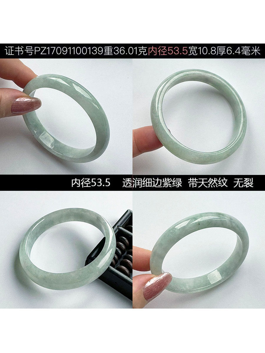 淘宝翡翠林 年轻秀气冰透细边翡翠手镯54 天然冰糯种淡紫绿缅甸玉镯53