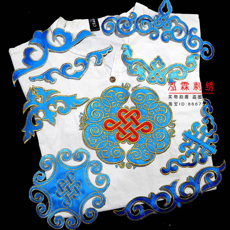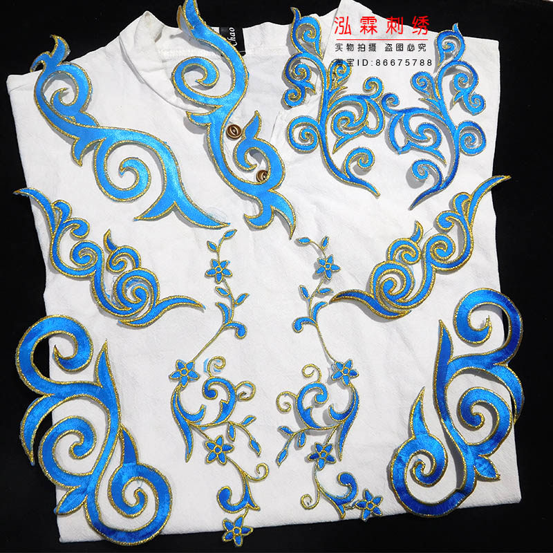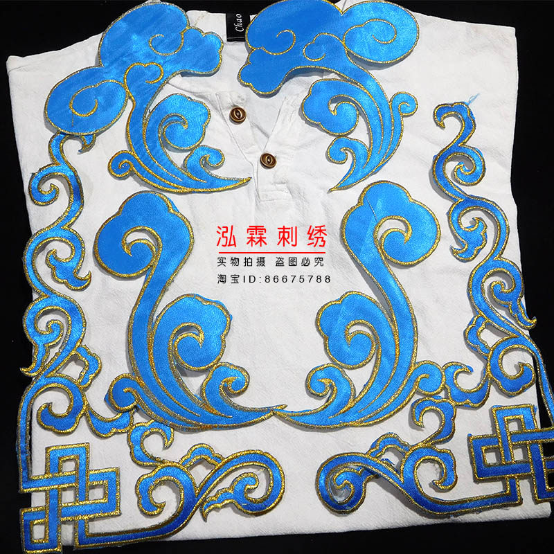 淘宝湖蓝色祥云刺绣布贴演出戏曲服装古装影视剧服装布贴古代图案贴花