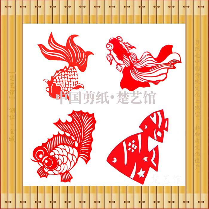 淘宝鱼剪纸窗花金鱼剪纸画幼儿园学校动物装饰画玻璃贴学生手工作品