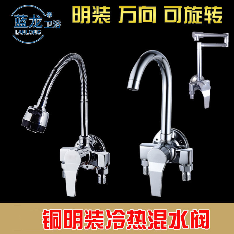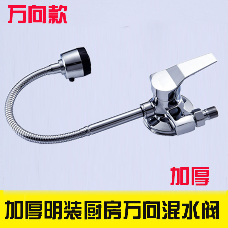 淘宝明装冷热水龙头混水阀厨房水阀万向菜盆挂墙式固定铜明管龙头