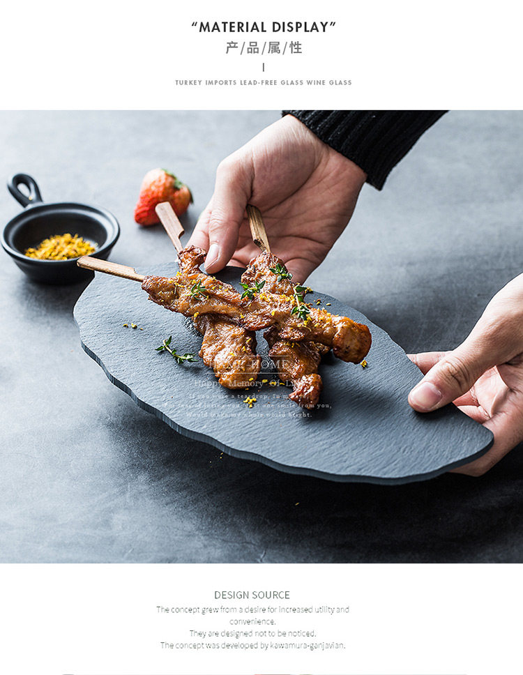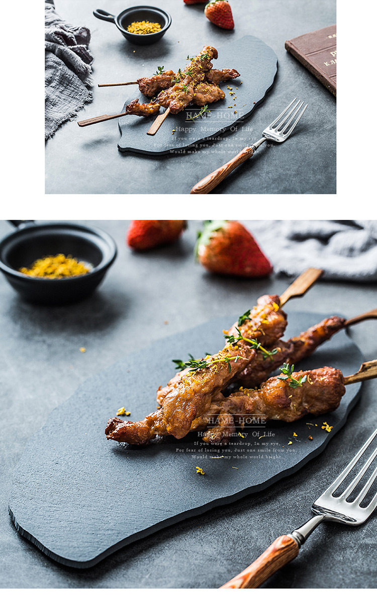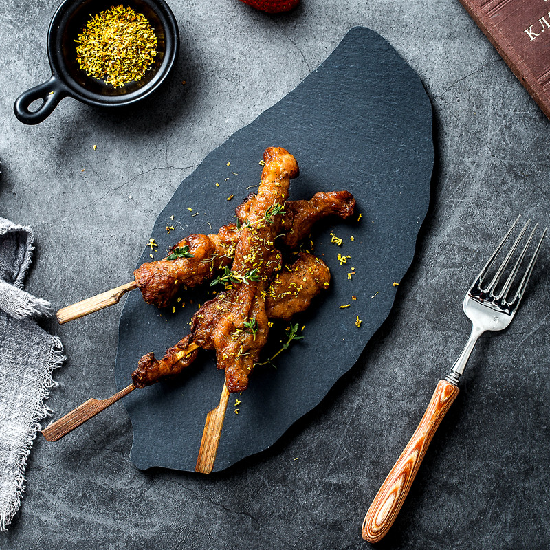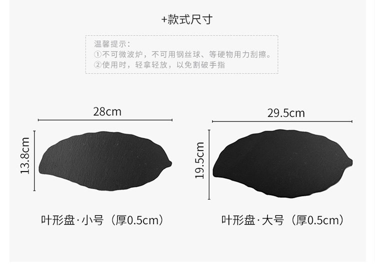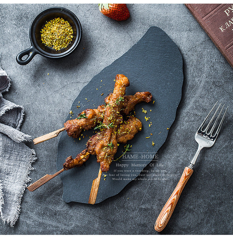 淘宝天然岩石树叶盘创意简约黑色寿司盘披萨糕点烘焙摆盘餐具牛排盘子