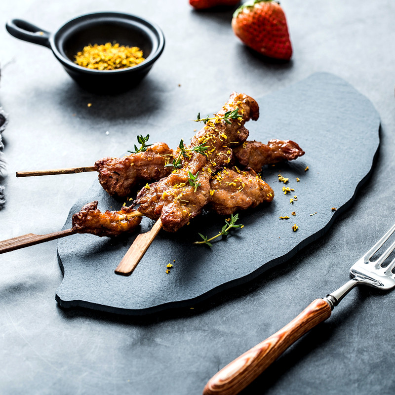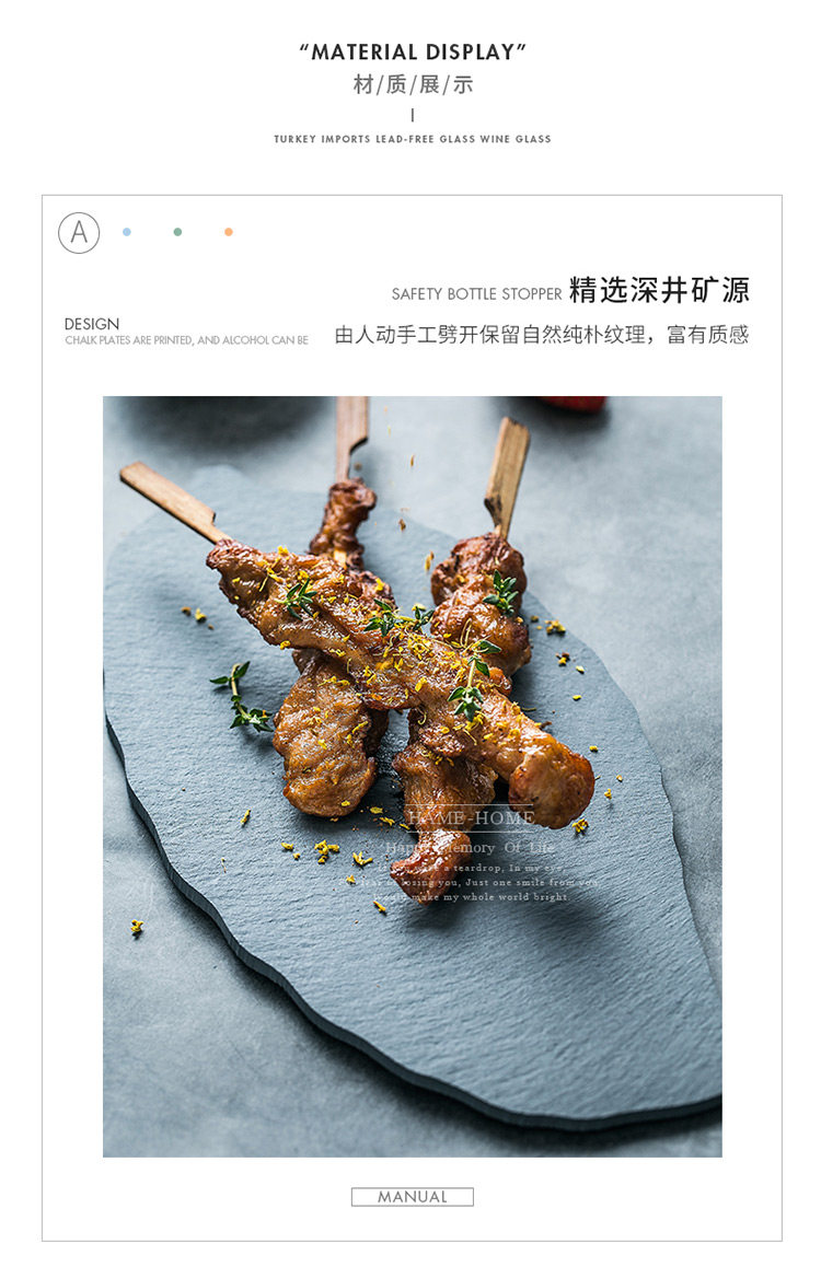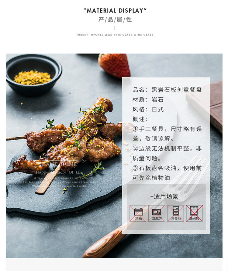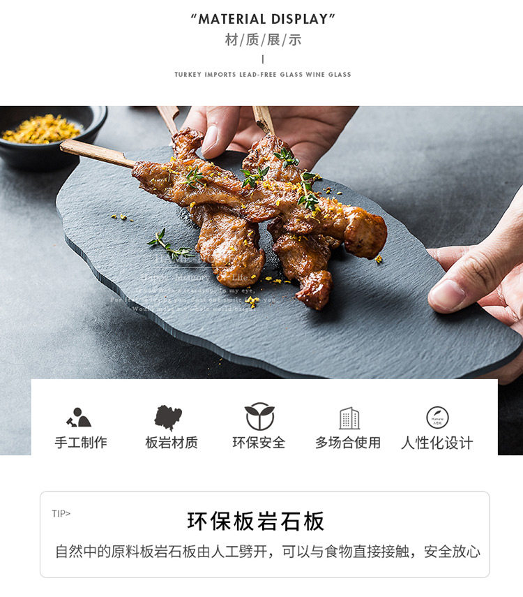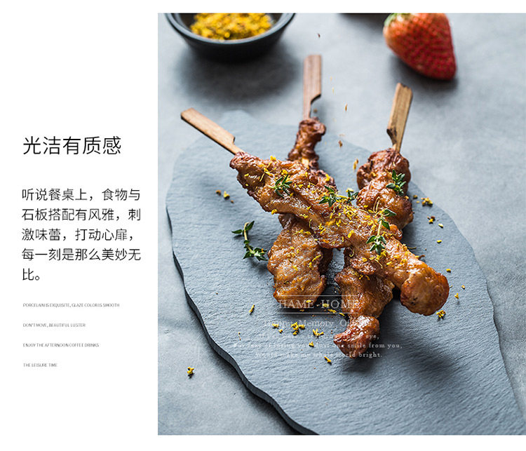 淘宝天然岩石树叶盘创意简约黑色寿司盘披萨糕点烘焙摆盘餐具牛排盘子