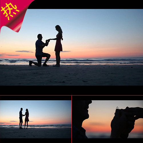 淘宝浪漫海边求婚 情侣逆光剪影 实拍海滩恋人求婚 唯美 视频素材