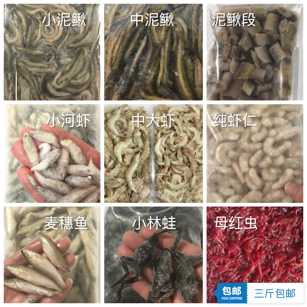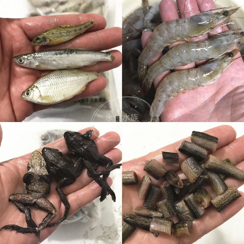 淘宝新鲜冻虾鱼饲料 去头尾虾段虾仁泥鳅段麦穗鱼小河虾红虫观赏鱼食