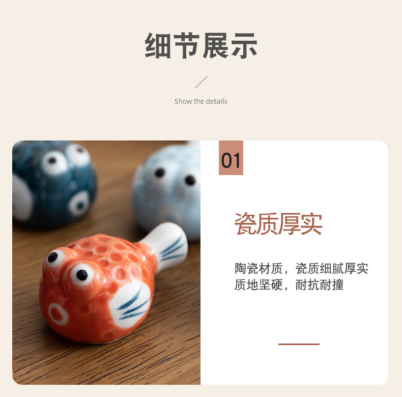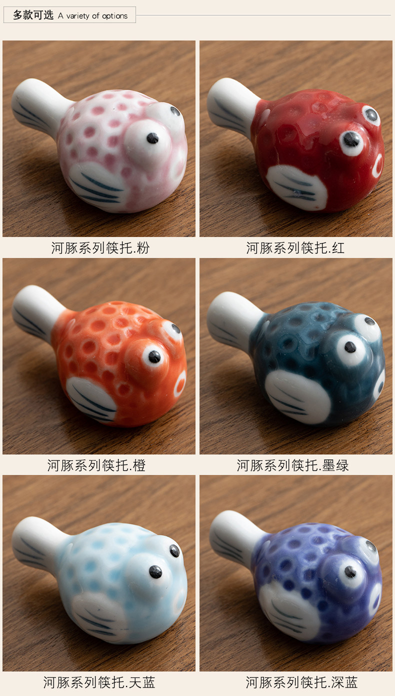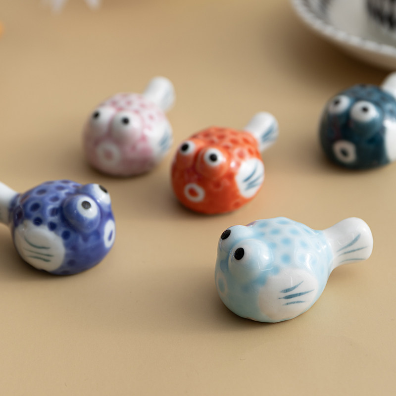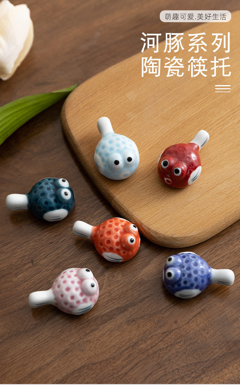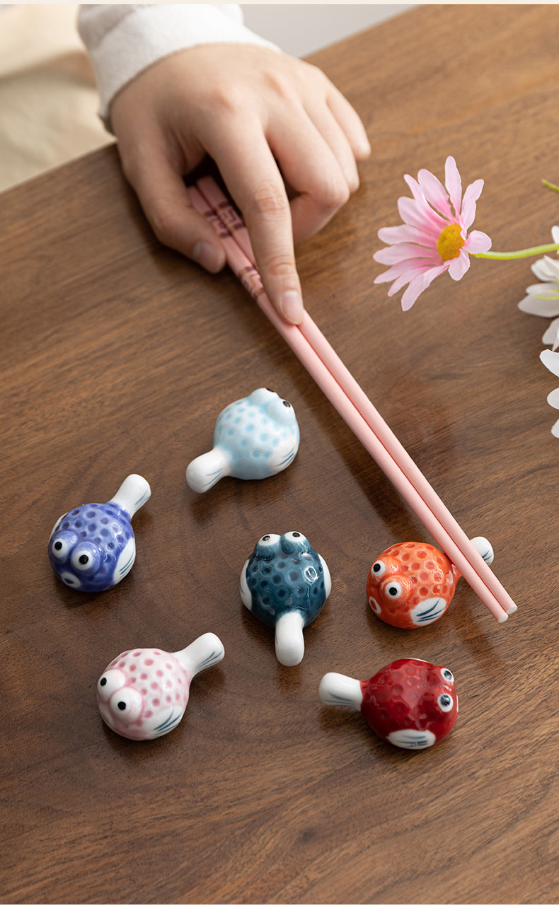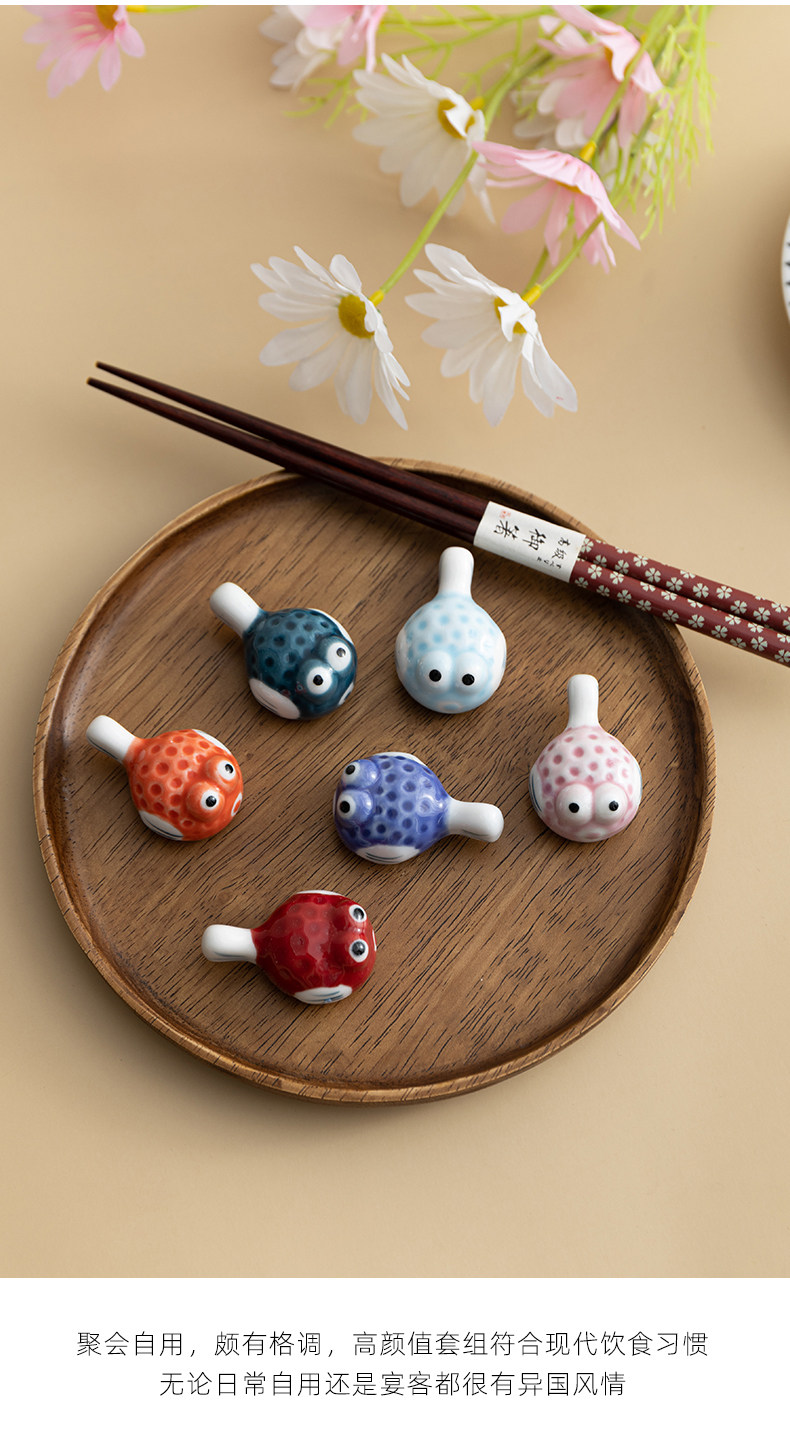 淘宝3个装创意可爱实心河豚鱼陶瓷筷子架筷枕托摆件日式寿司餐厅筷子