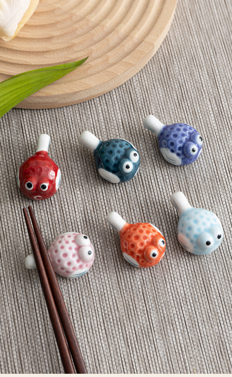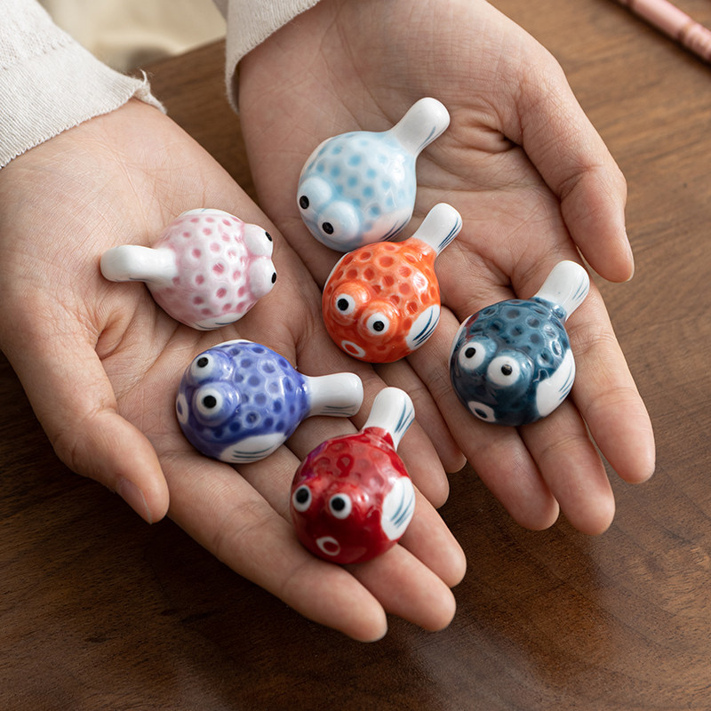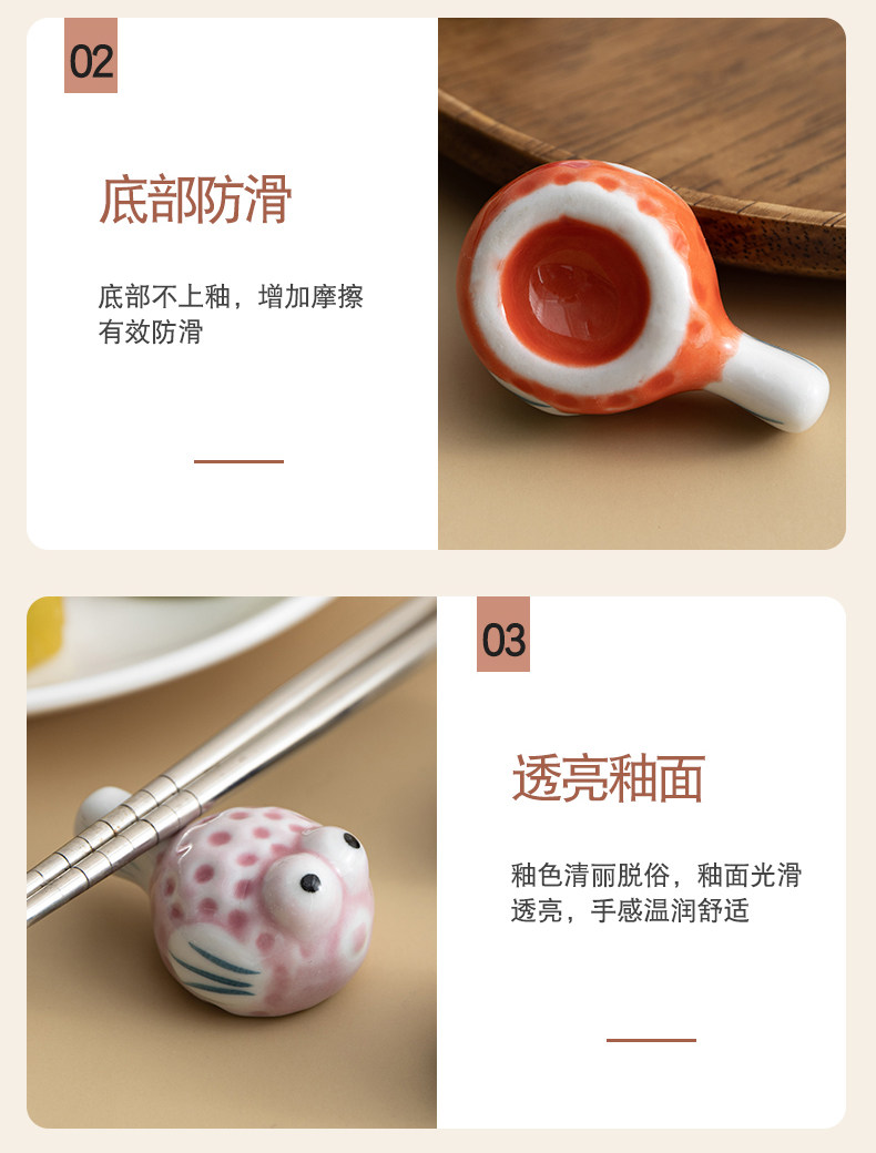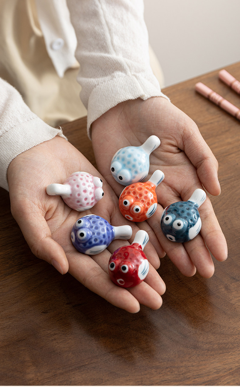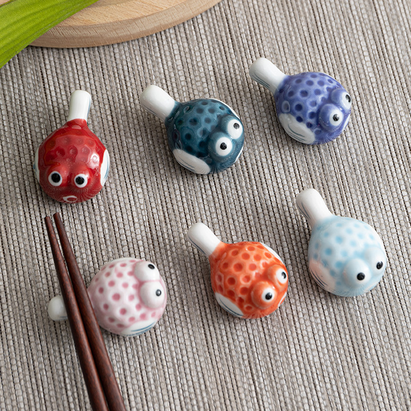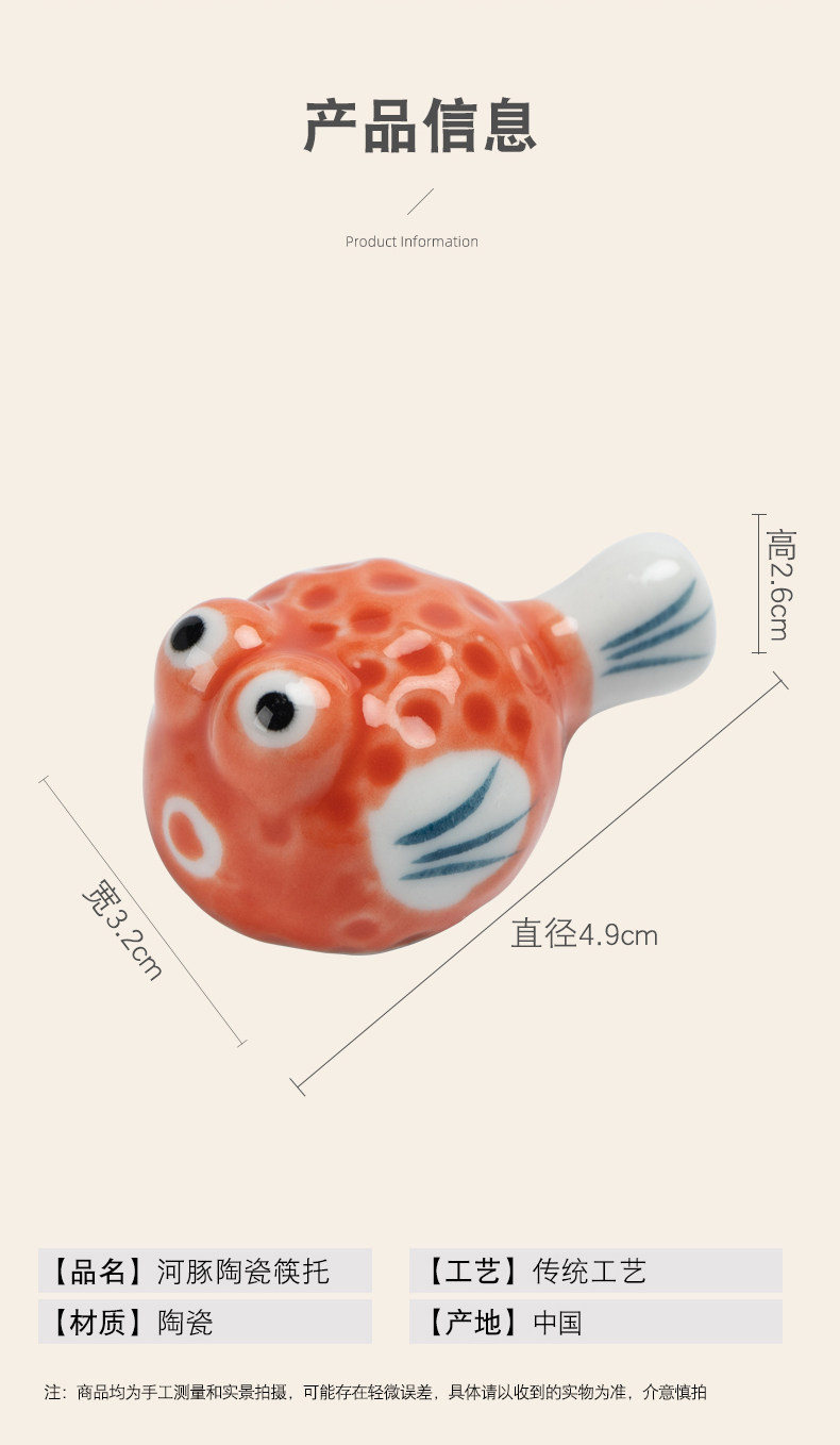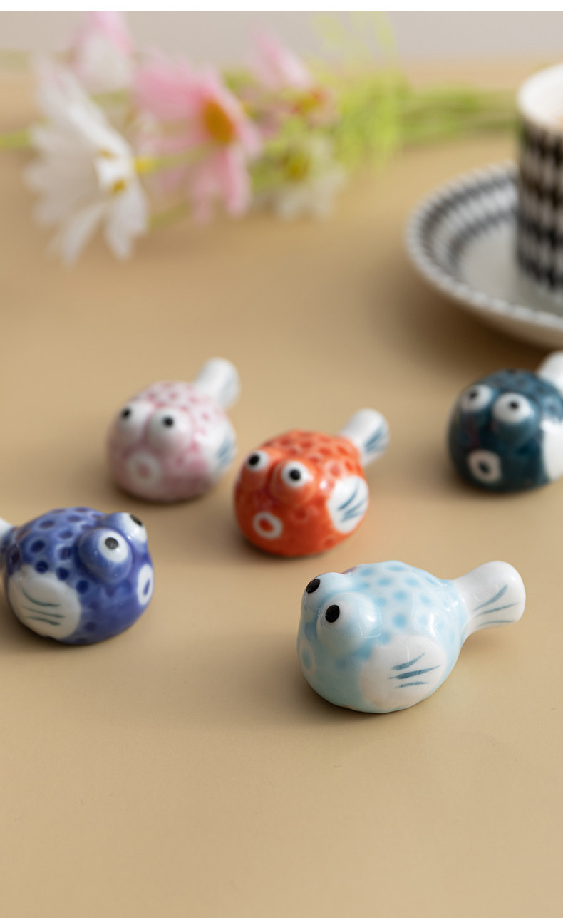 淘宝3个装创意可爱实心河豚鱼陶瓷筷子架筷枕托摆件日式寿司餐厅筷子