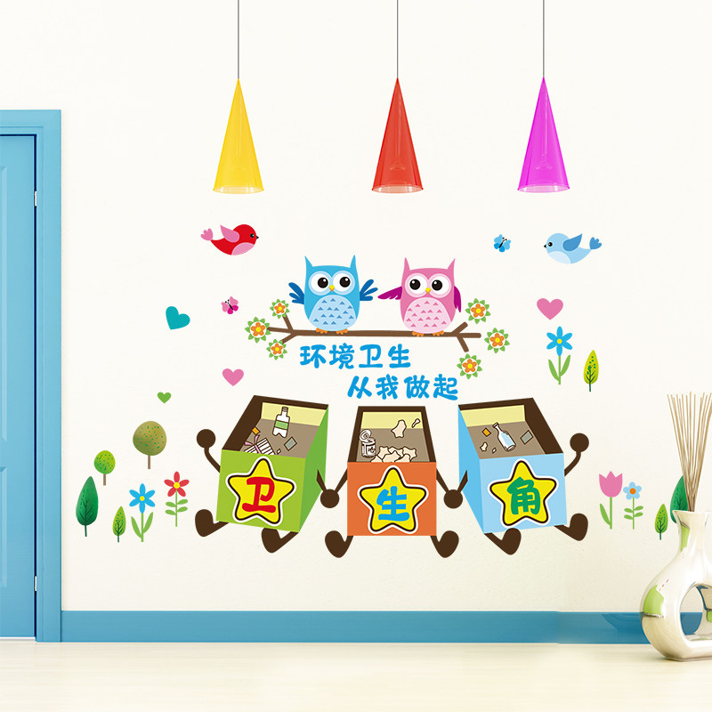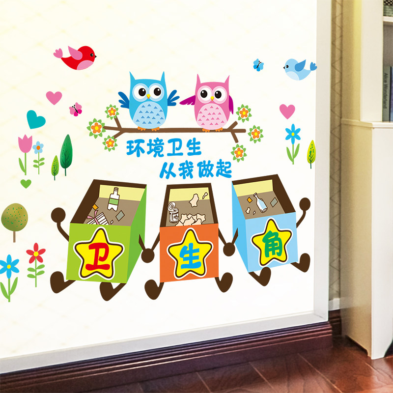 淘宝卫生角墙贴纸幼儿园教室文化墙布置墙面装饰小学班级卡通贴画自粘