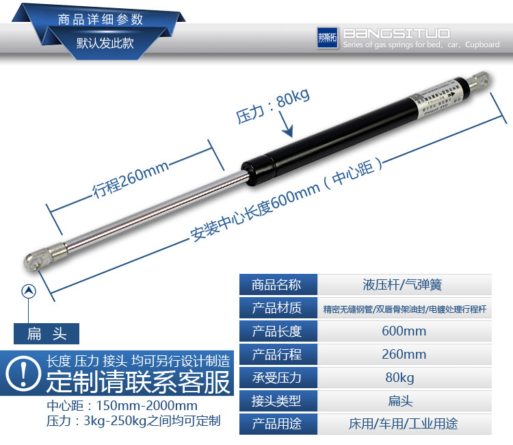 淘宝600mm大压力床用液压杆床支架气弹簧重型气撑杆氮气气压杆气动杆