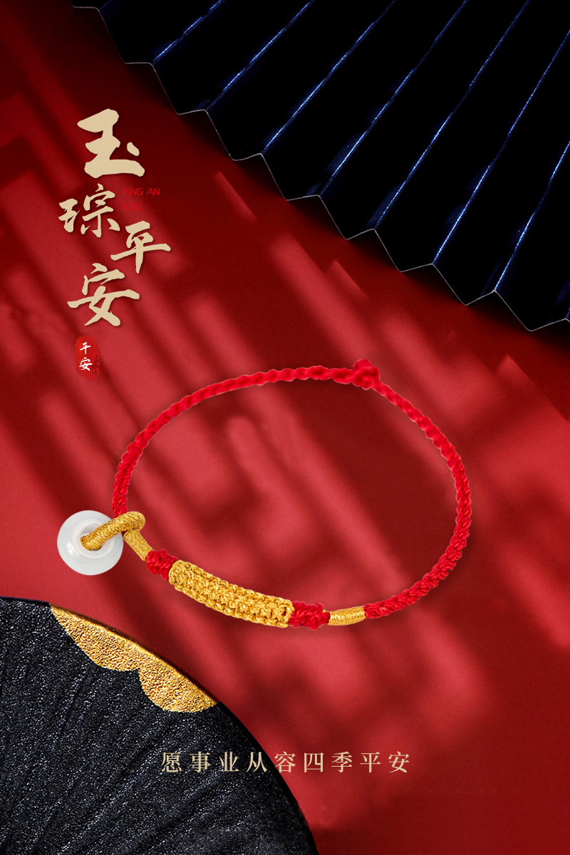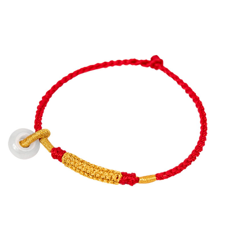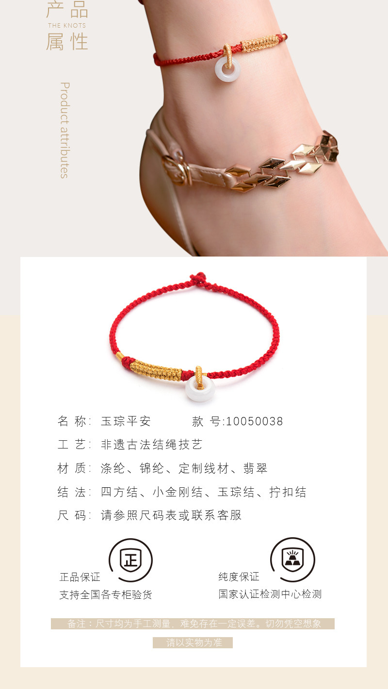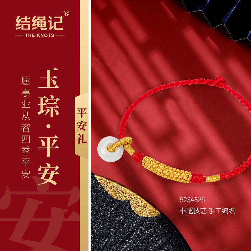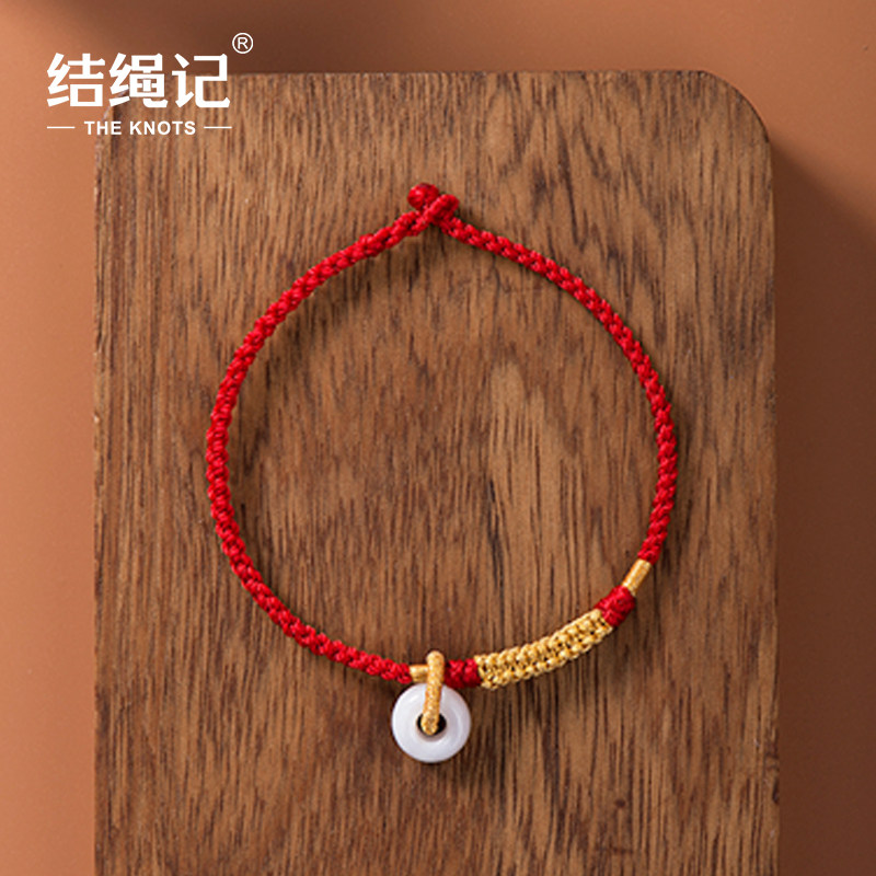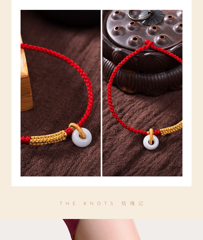 淘宝结绳记玉琮结黄金翡翠平安扣红绳定制手工编织绳脚绳男女手链脚链