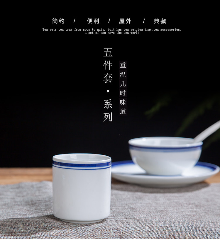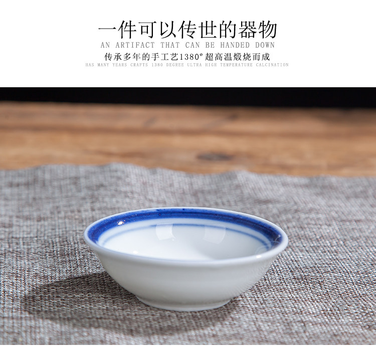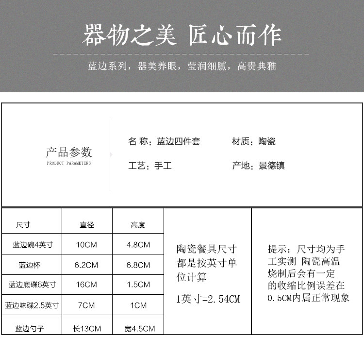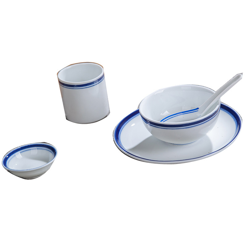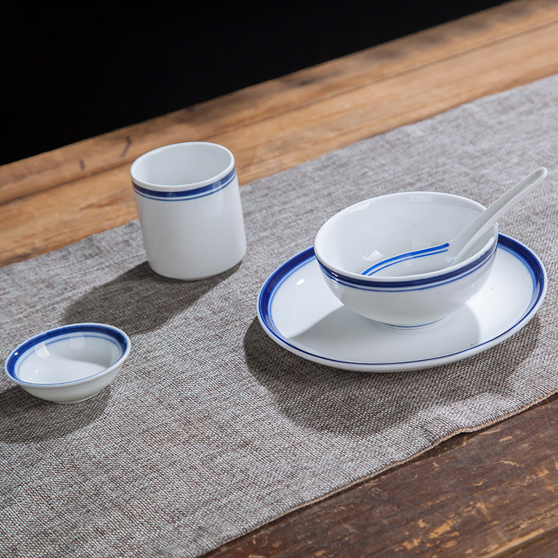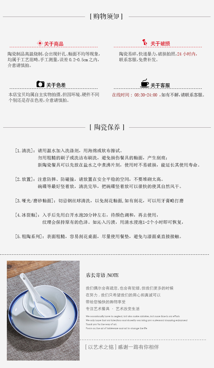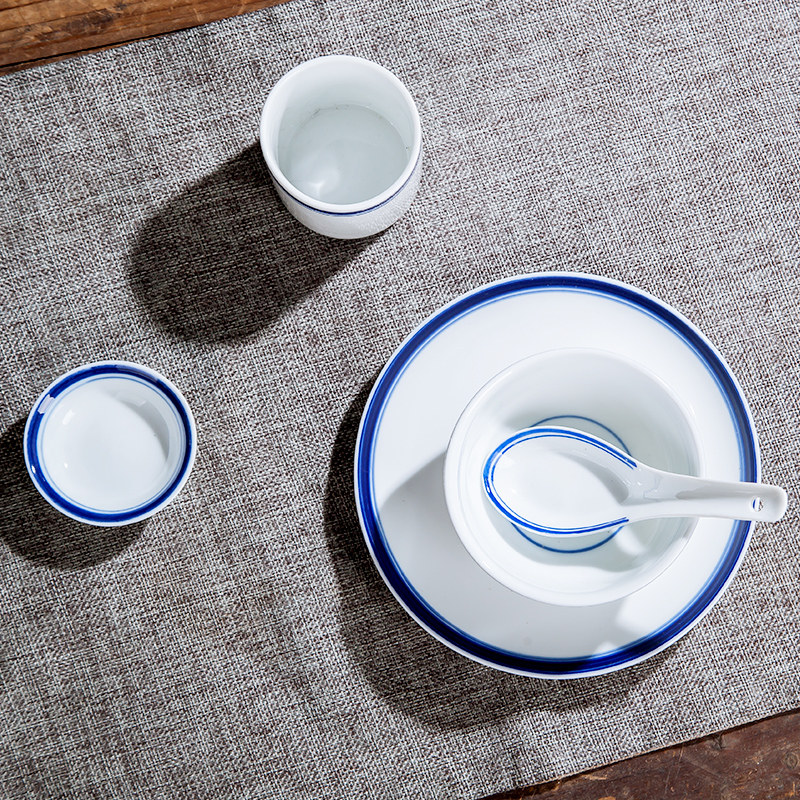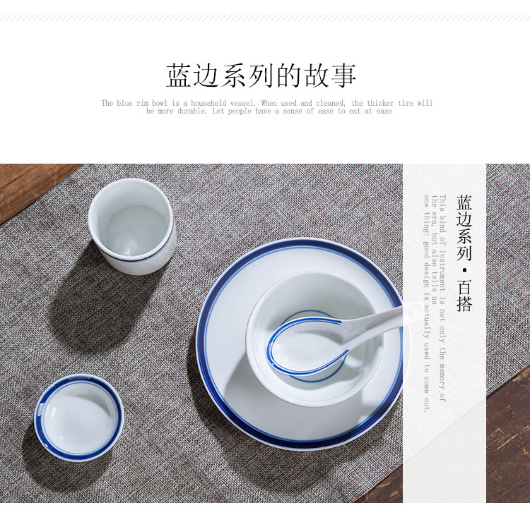 淘宝釉下彩碗碟勺杯味碟甜品店餐具景德镇蓝边碗青花瓷碗盘可定制logo