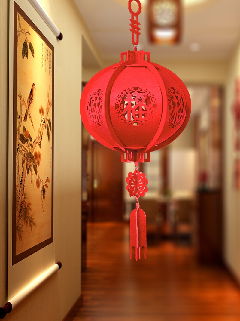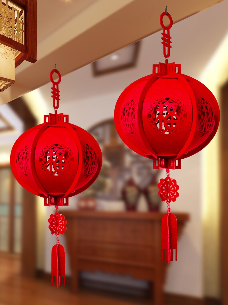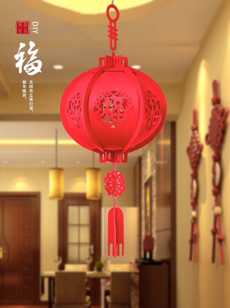 淘宝新年灯笼装饰挂饰红灯笼无纺布立体福字宫灯元旦春节挂件客厅阳台