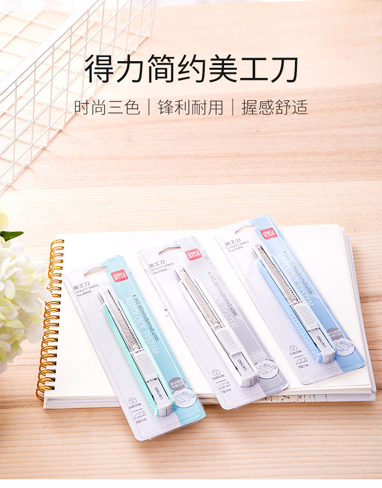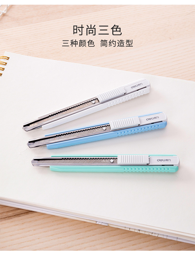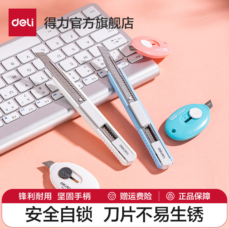 淘宝得力美工刀小刀简约迷你彩色美工刀快递刀刻刀学生美术课手工刀裁纸刀家用办公开箱刀片手工刀开箱高颜值包裹