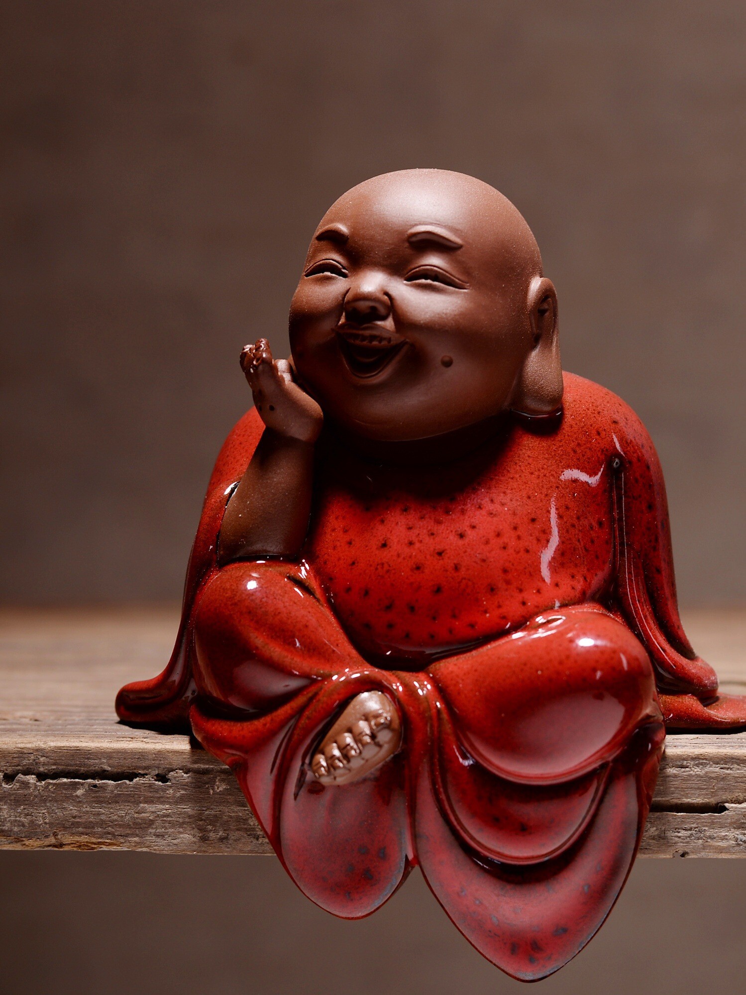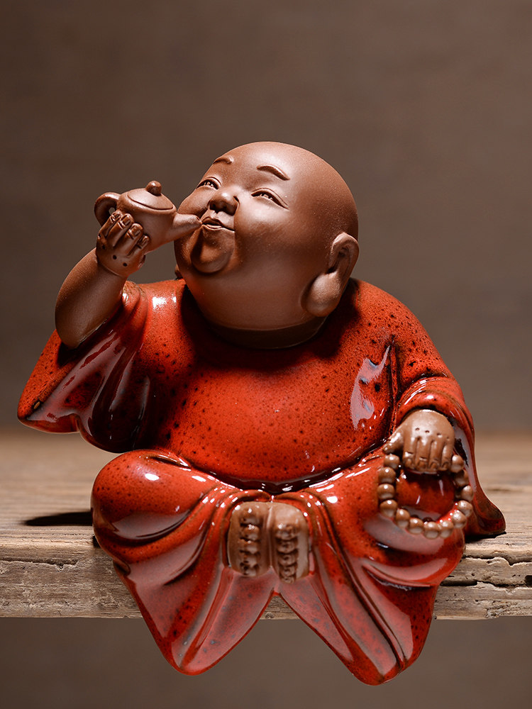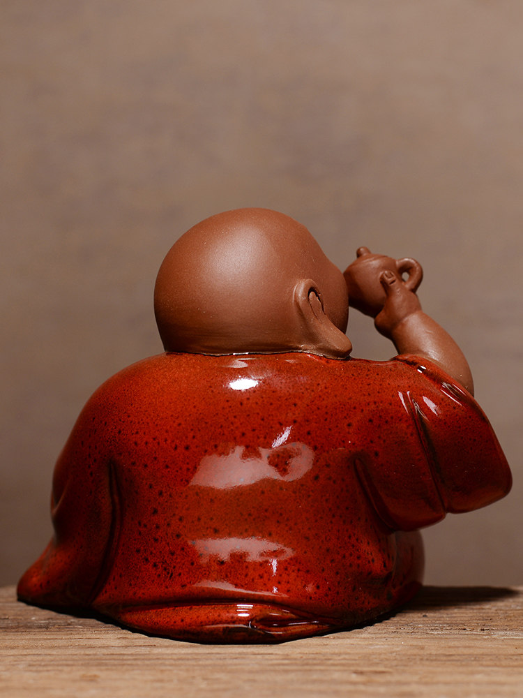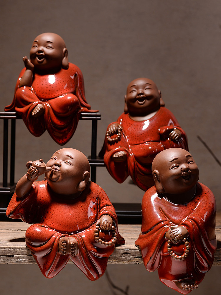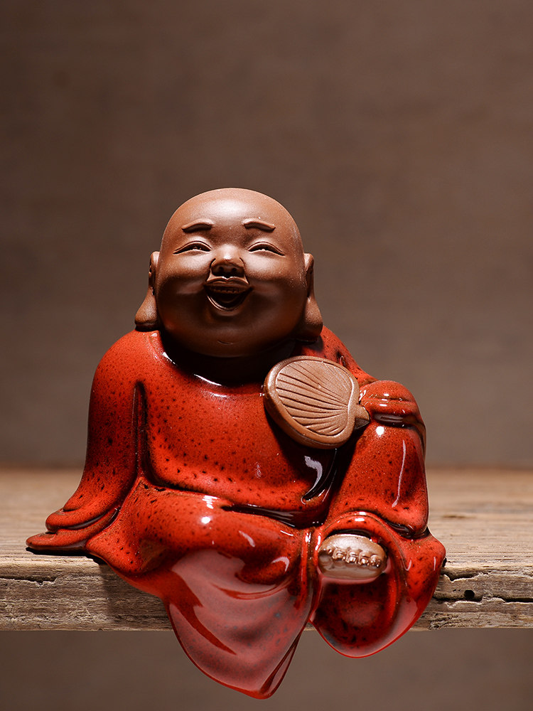 淘宝中式红色禅意陶瓷手工艺品 招财弥勒笑佛佛像 客厅博古架装饰摆设