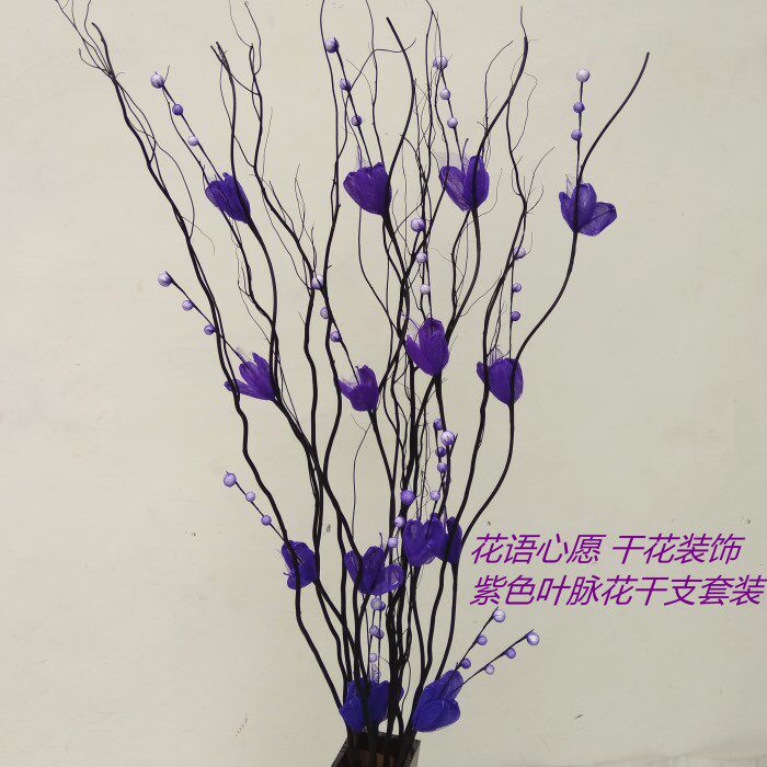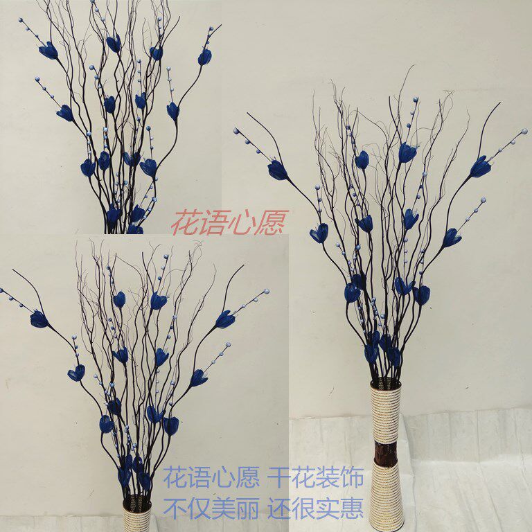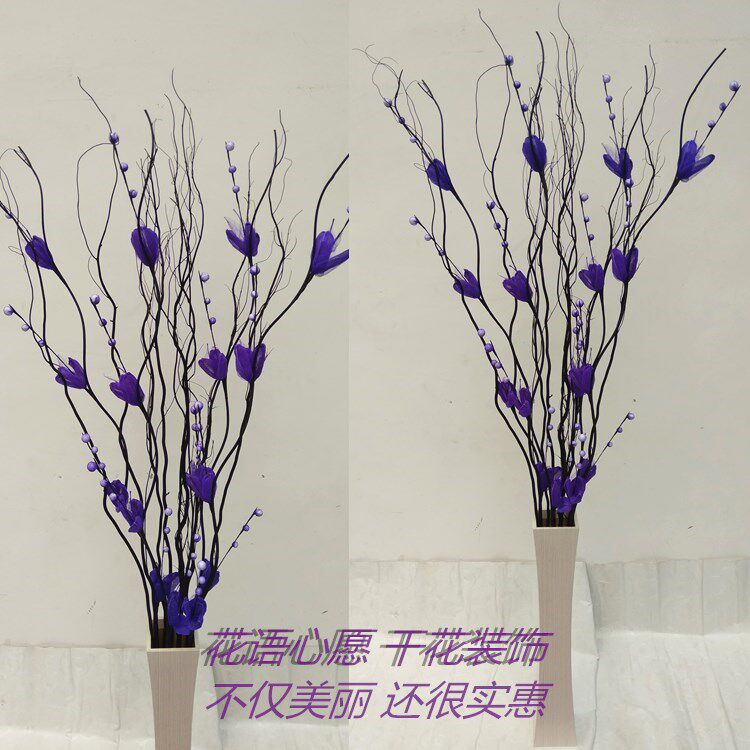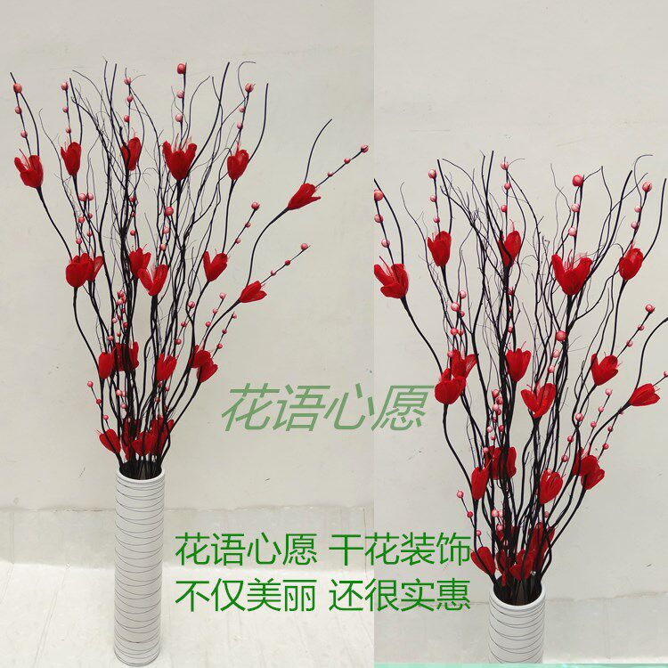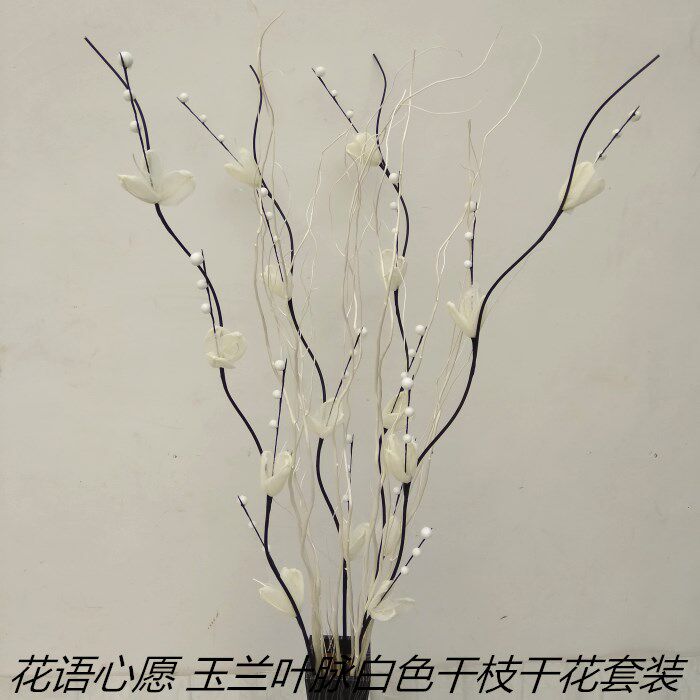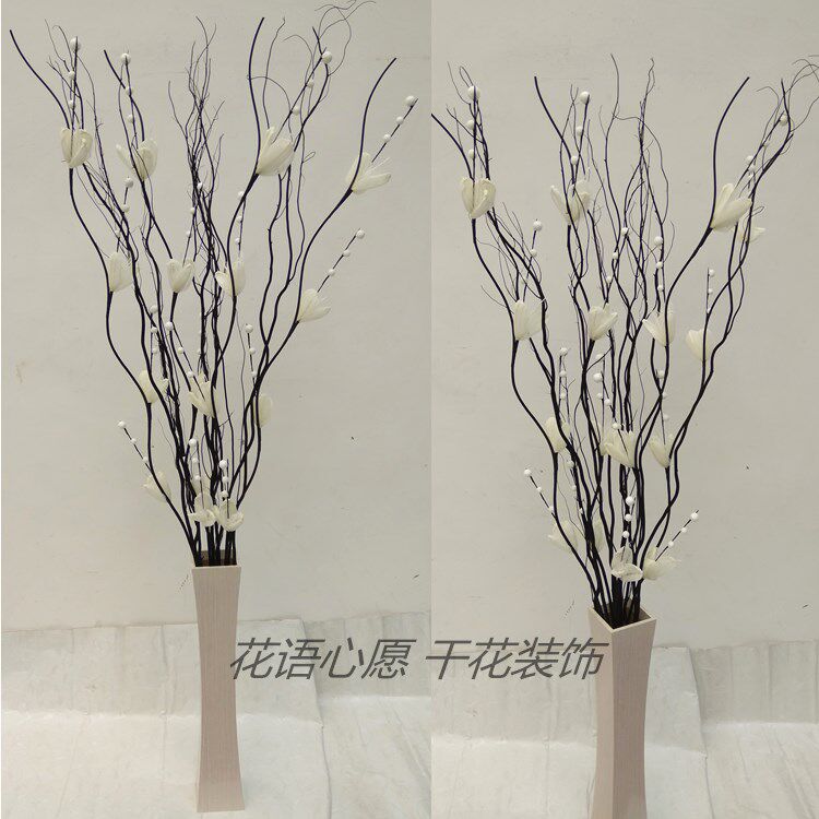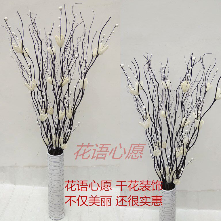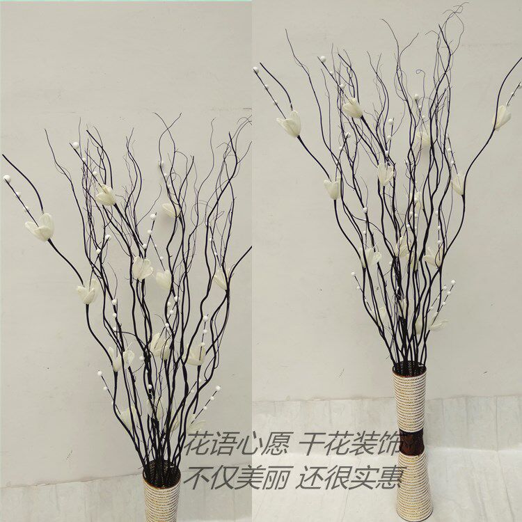淘宝玉兰叶脉雪梅花手工花干支干花干枝龙柳客厅酒店橱窗隔断落地摆放