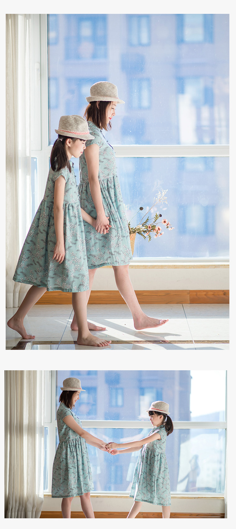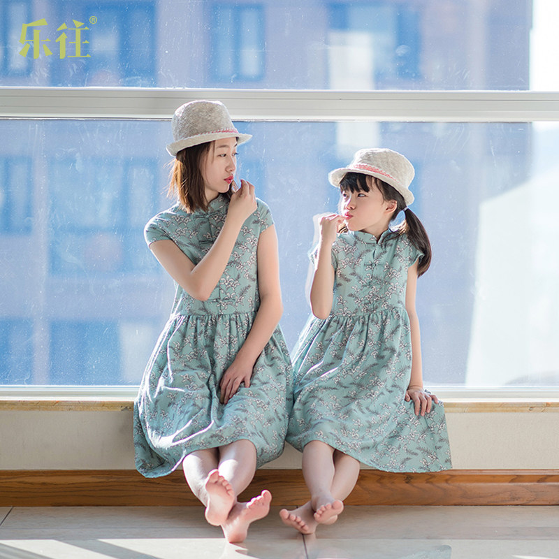 淘宝小乐往亲子装330课女童公主母女装中国风文艺复古棉麻连衣裙度假