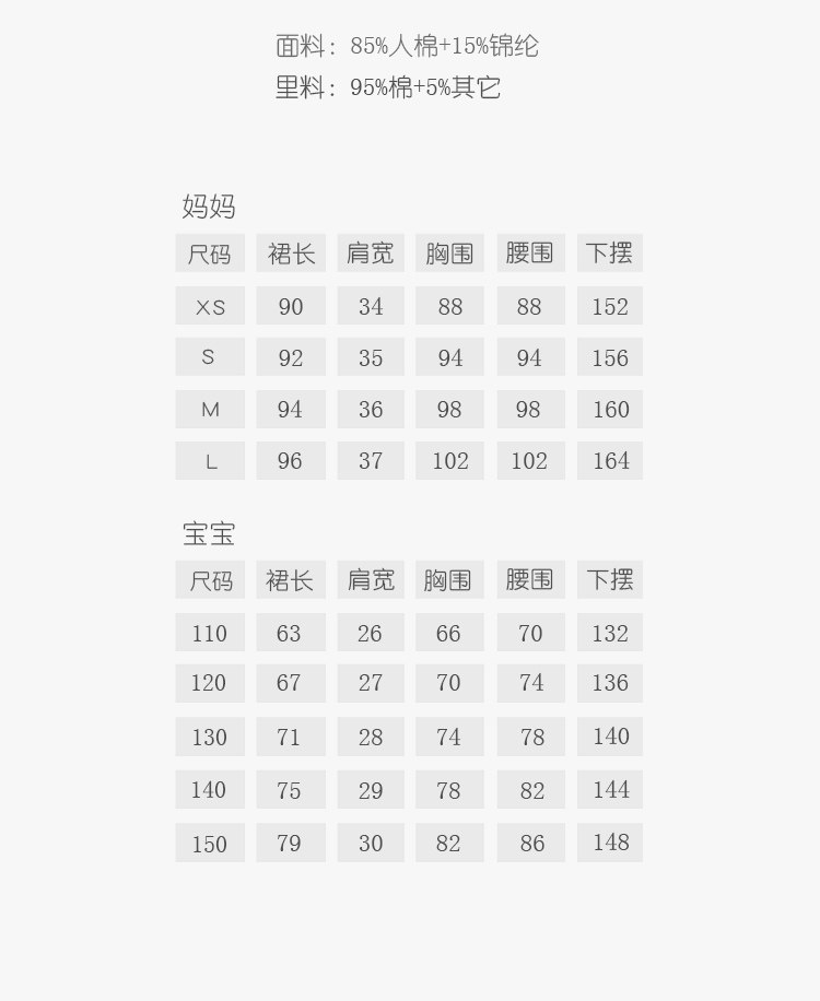 妈妈XS现货 妈妈S码现货 宝宝110cm现货 宝宝120cm现货 宝宝130cm现货 宝宝140cm现货 宝宝150cm现货 妈妈L码现货 请选择