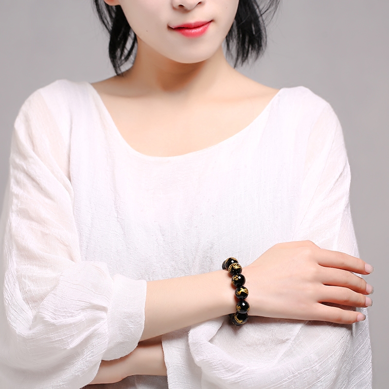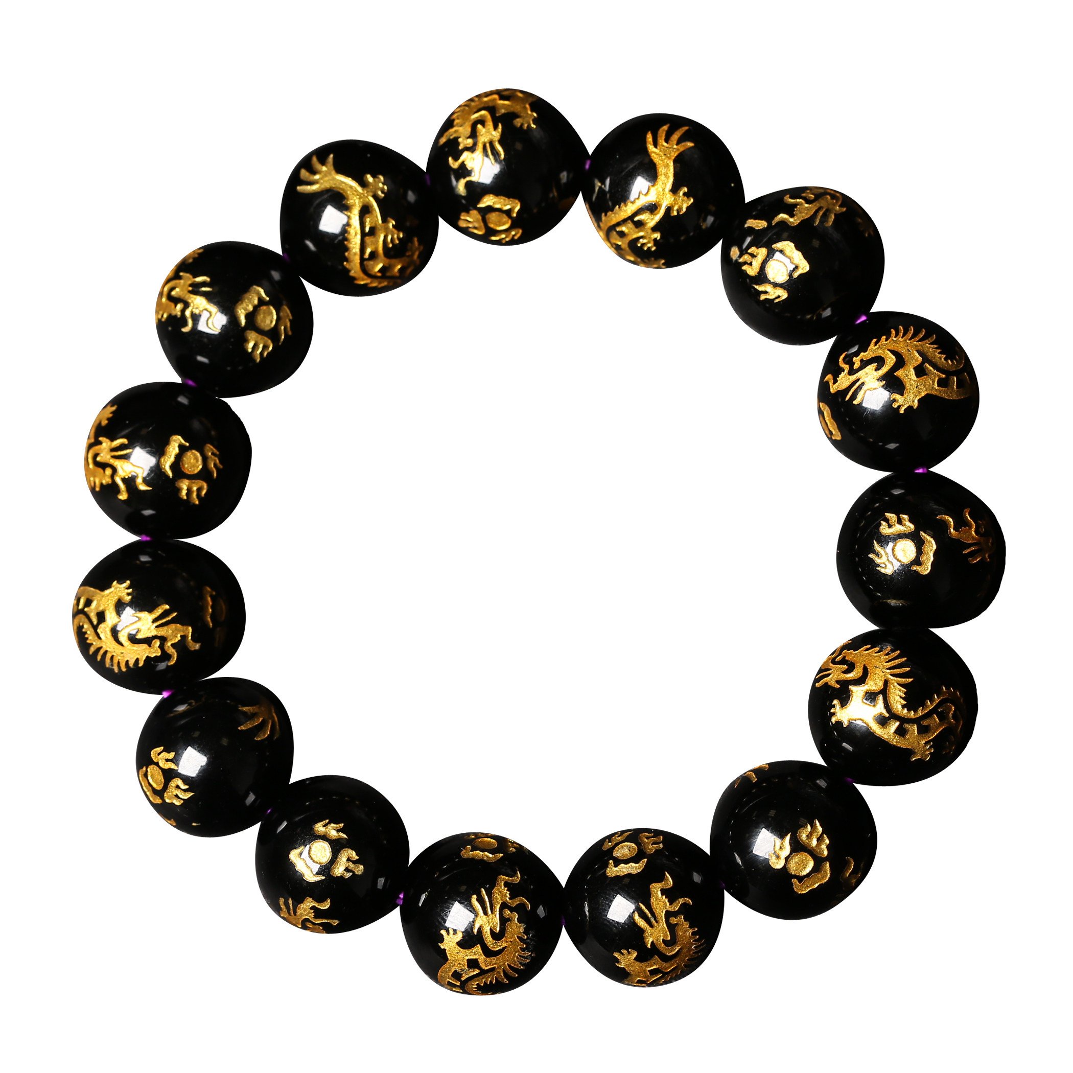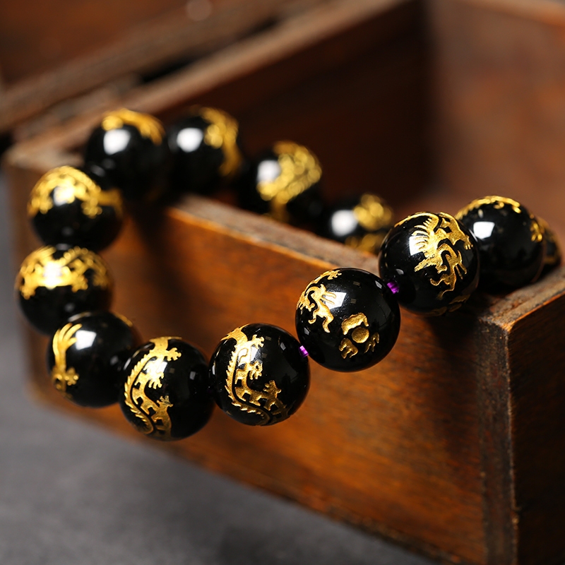 淘宝天然黑玛瑙烫金刻龙手链手串生肖龙金店貔貅配珠霸气款圆珠子包邮