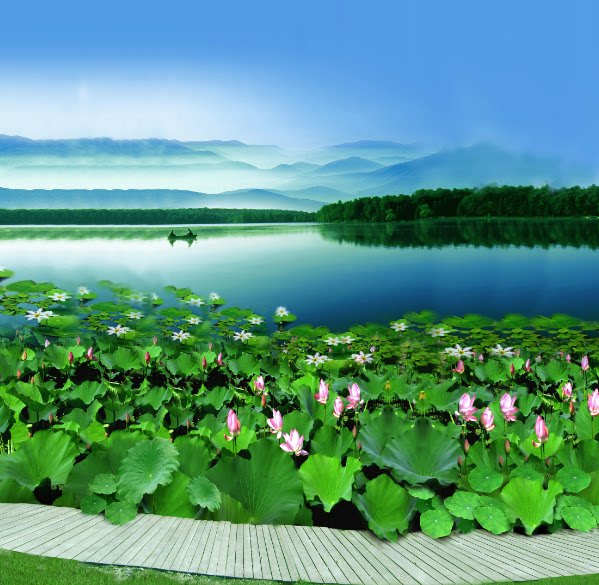 淘宝才艺主播古装山水风景大草原背景布水帘洞快手茶园直播间背景布