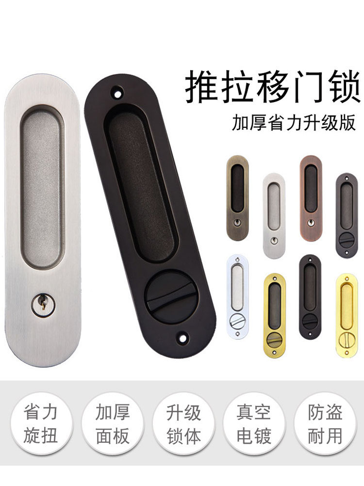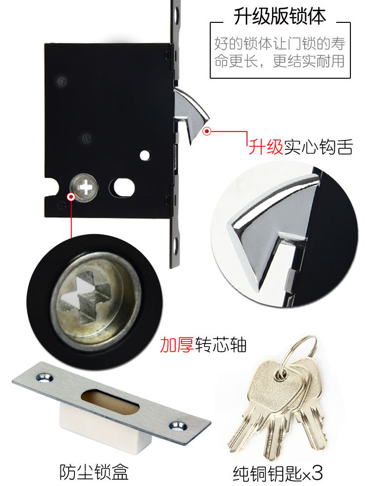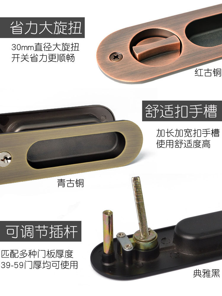 淘宝木移门锁推拉门钩锁卫生间厨房门北欧美式黑色门锁吊滑门隐形勾锁