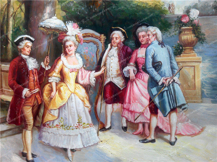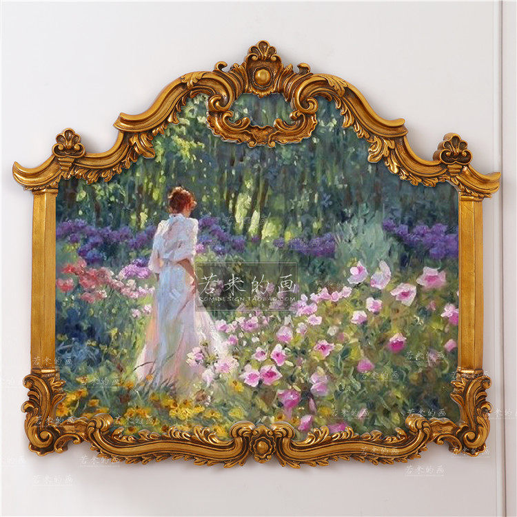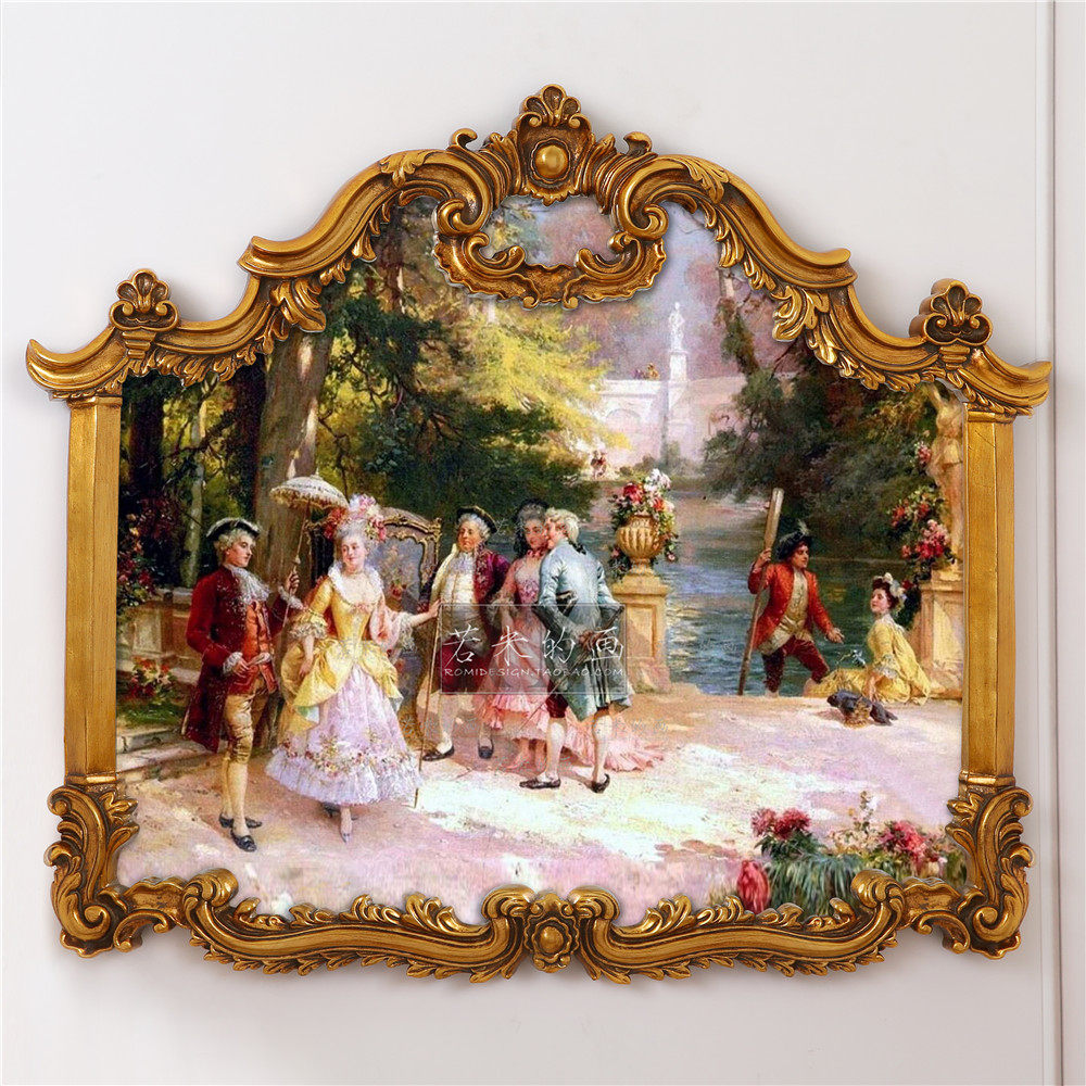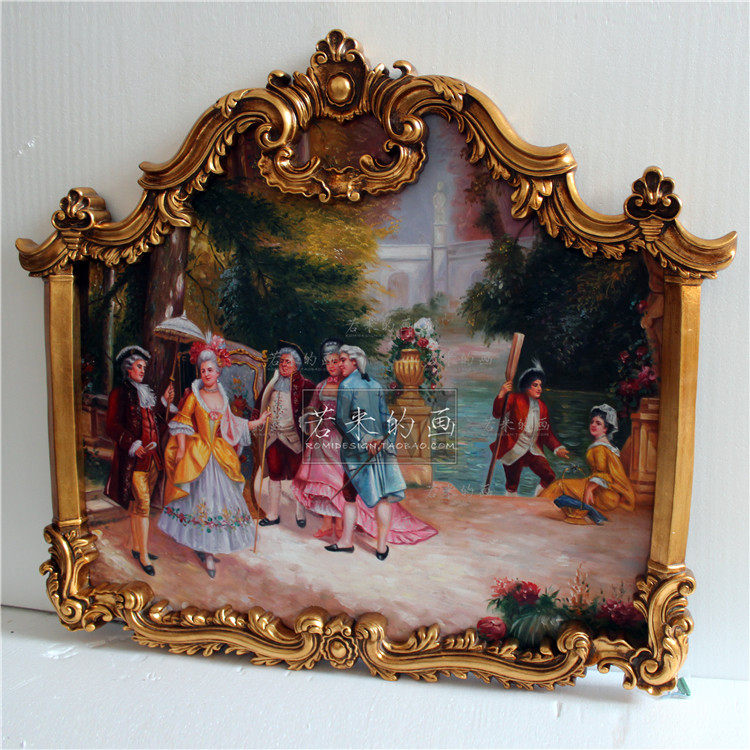 淘宝98x86欧美法式异形横向壁炉画玄关手绘宫廷奢华人物女孩花园油画