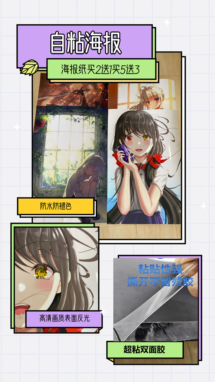 40X60cm 60X90cm A4背胶海报(12元3张图案任选) A8(15x20)4元10张 A3(29x42cm)背胶海报 请选择