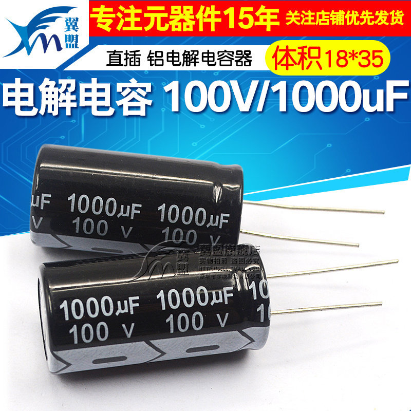 淘宝翼盟 电解电容 100V/1000uF 体积18*35mm 直插 优质铝电解电容器