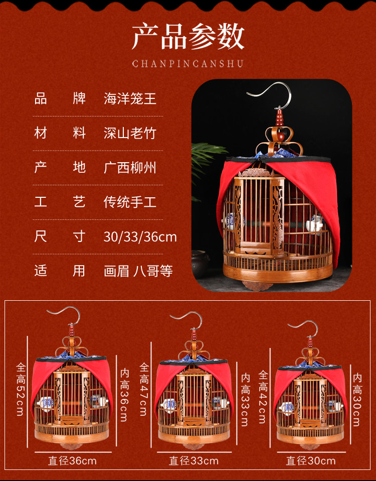 淘宝贵州画眉鸟笼竹制精品全套配件海洋鸟笼大全鹩八哥鸟笼子大号手工