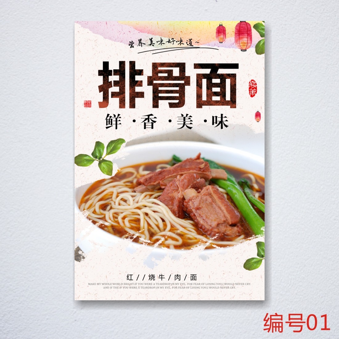淘宝排骨面 牛肉面 牛腩面 肥肠面 广告海报贴纸贴画装饰画早点面馆店