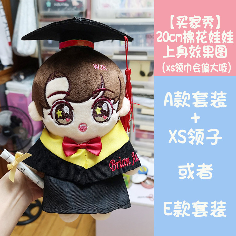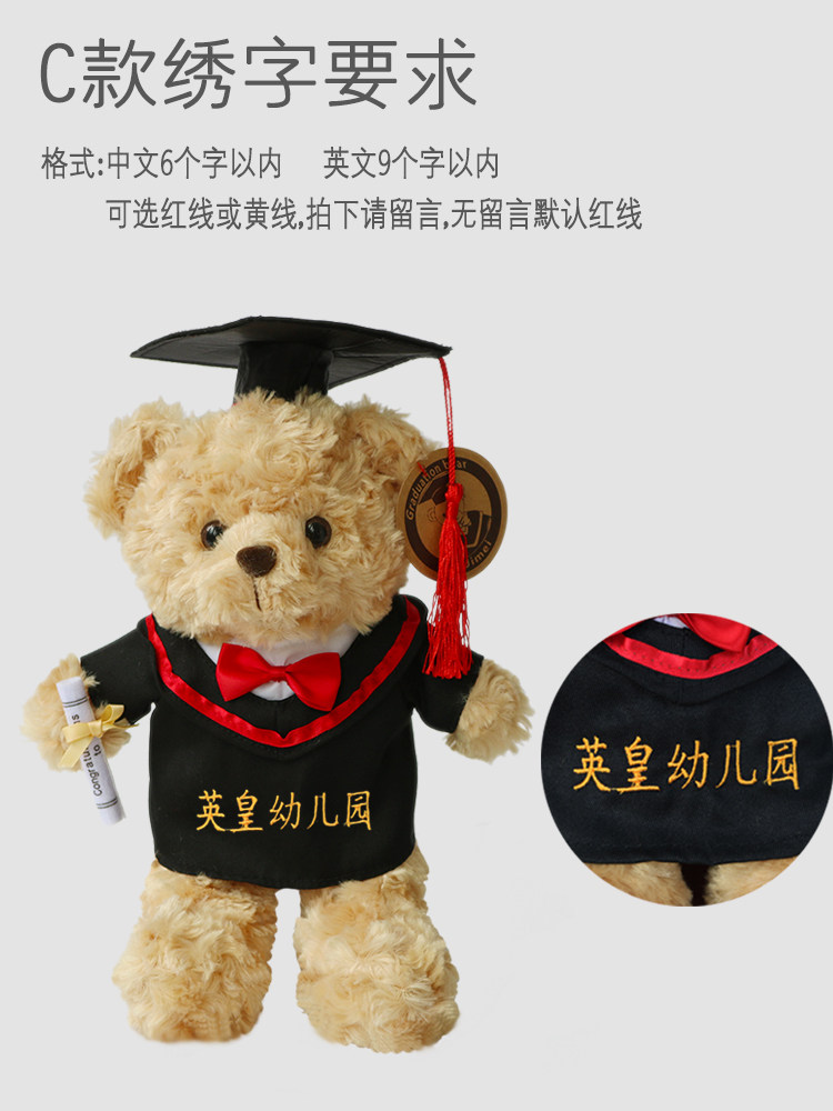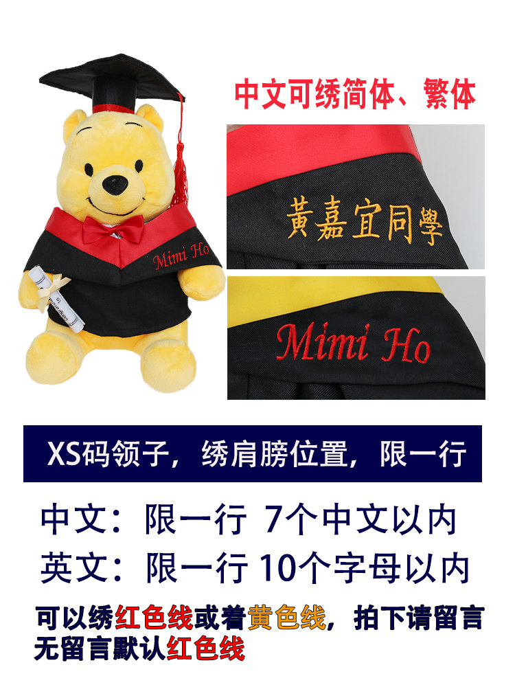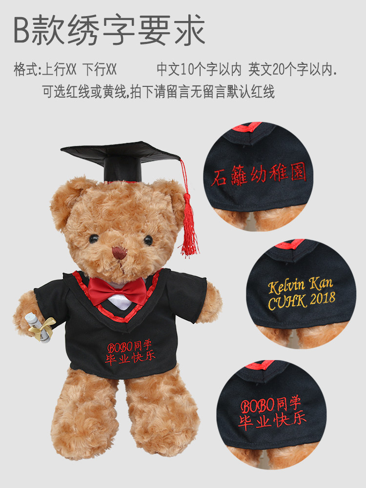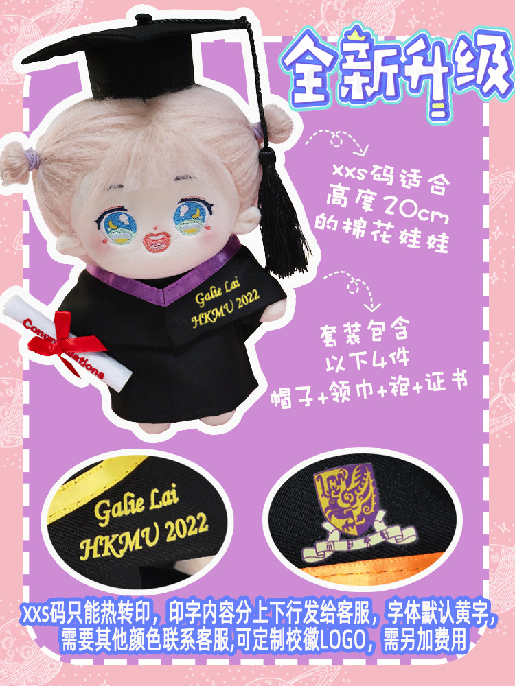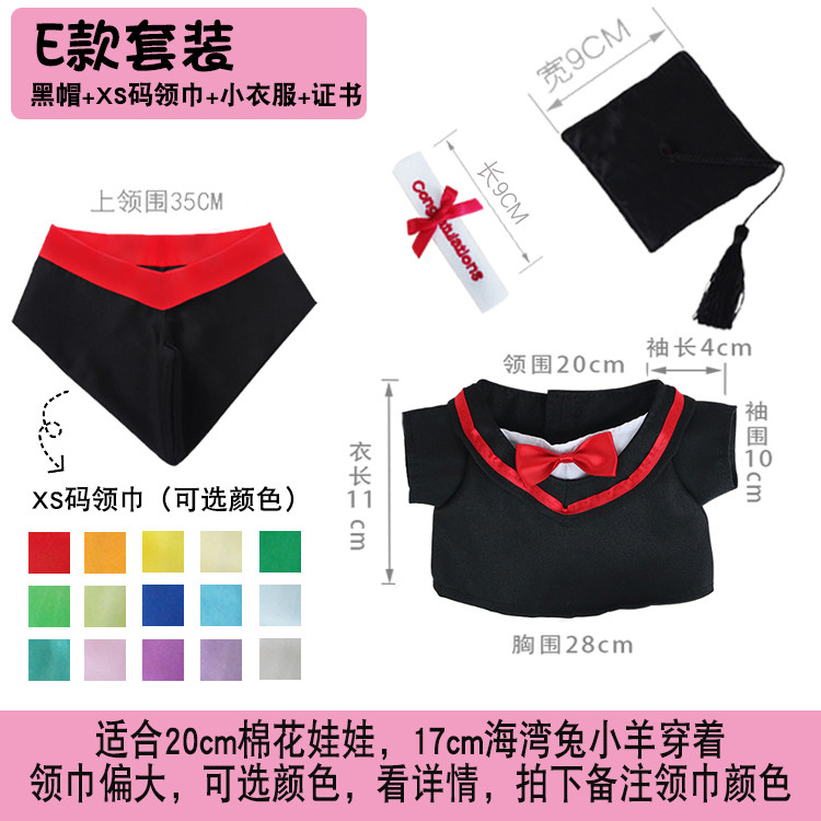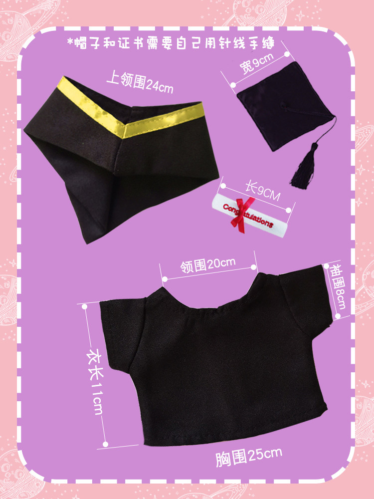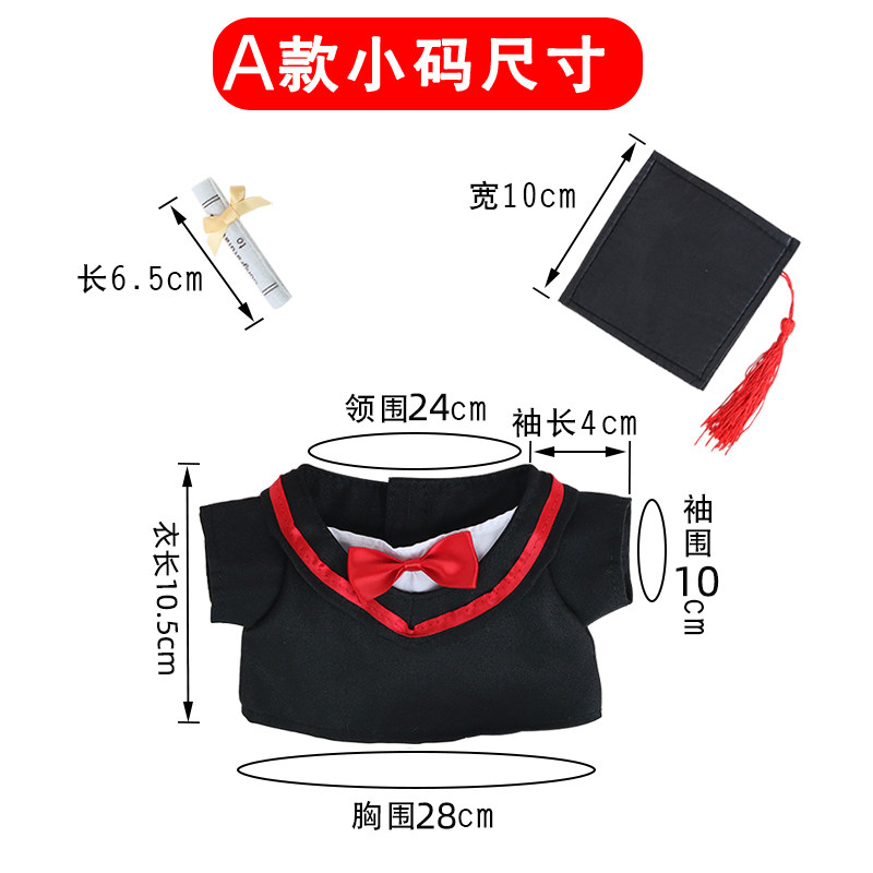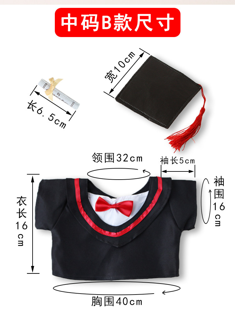 淘宝学士服娃衣毕业熊公仔袍衫20CM棉花娃娃衣博士帽绣字衣服幼儿园