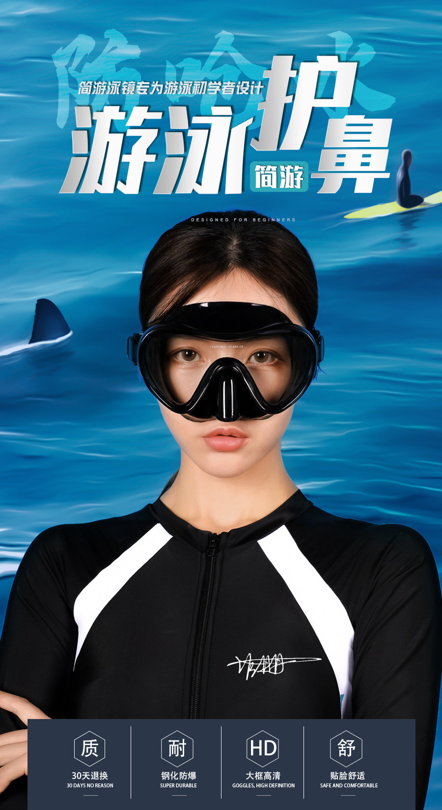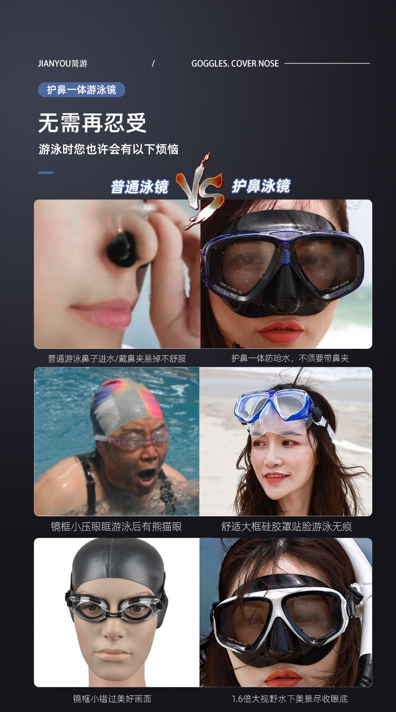 淘宝高清大框游泳镜护鼻一体防水潜水镜防雾男女近视儿童游泳眼镜装备