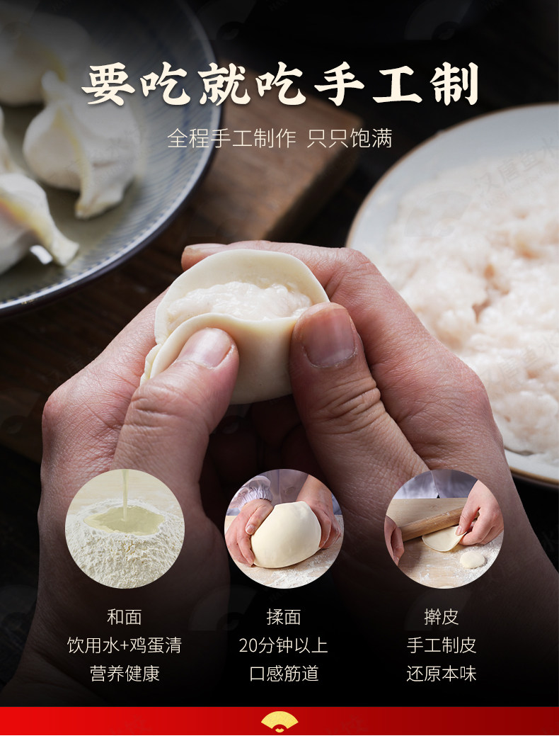 淘宝汉唐水饺虾仁三鲜馅饺子手工青岛海鲜水饺韭菜猪肉饺速冻食品顺丰